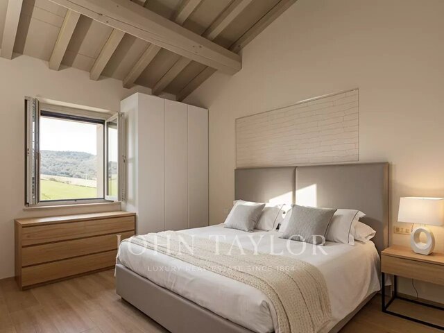 Nestled in the heart of a preserved natural environment, this exceptional property, entirely renovated in 2025 using top-of-the-range materials, offers a rare living environment combining elegance, comfort and absolute tranquility. Set on a magnificent 3.5-hectare flat plot, the main house comprises a ground-floor entrance hall with small living room, a vast 78 m² reception area including living room and dining room, a separate kitchen, and four superb master suites with private shower rooms. Upstairs, a sumptuous master bedroom with full bathroom and direct access to a private terrace, offering soothing views of the surrounding countryside. The property also includes an independent guest house, comprising a living room with open kitchen, and two en suite bedrooms with their own shower rooms. Annexes include a double garage, a gym, a cinema room and a wine cellar.
