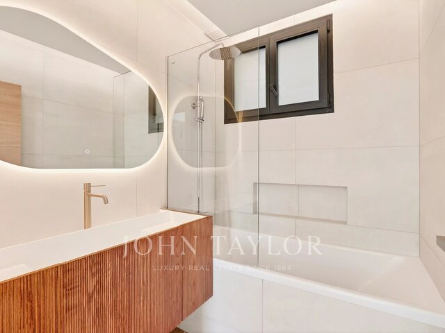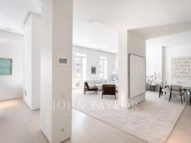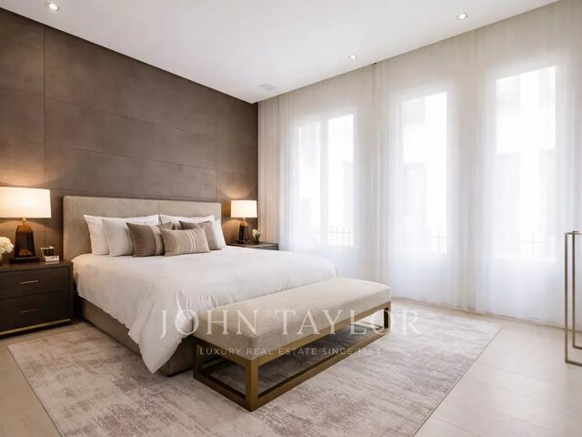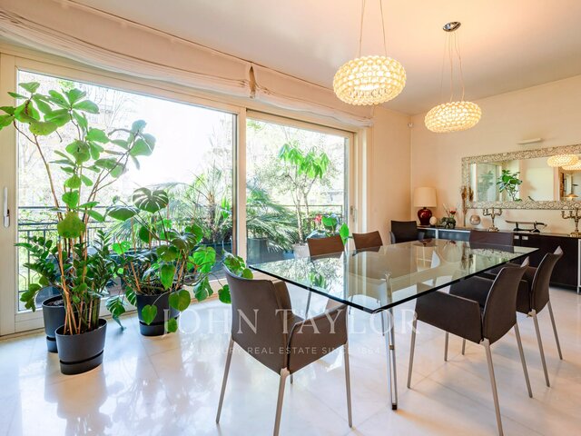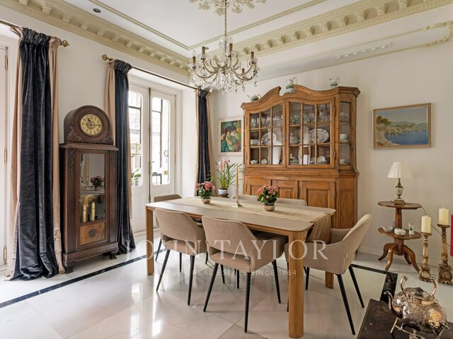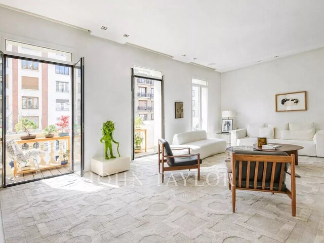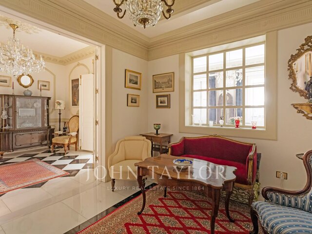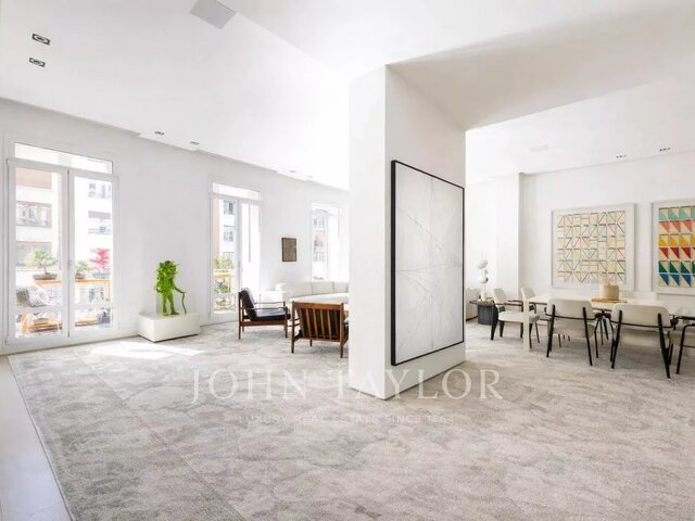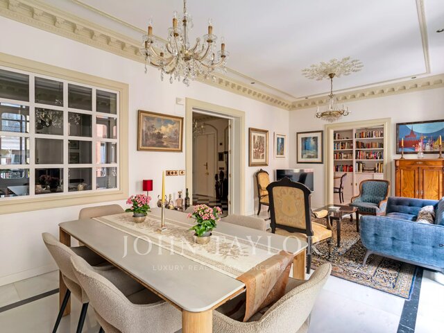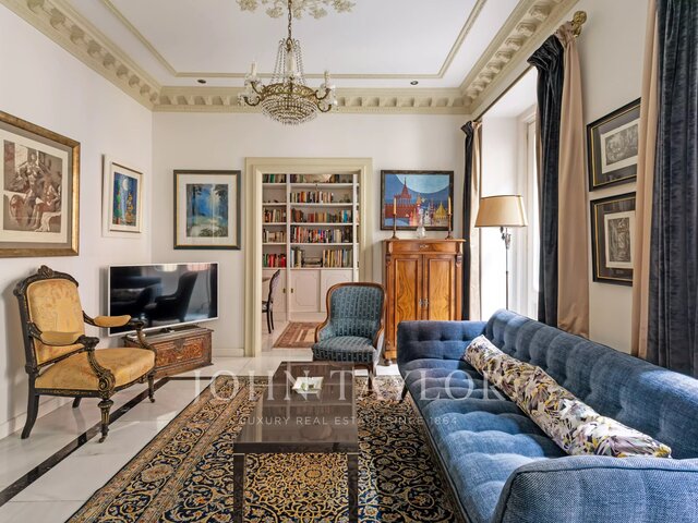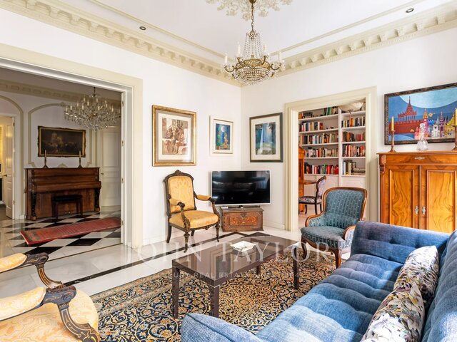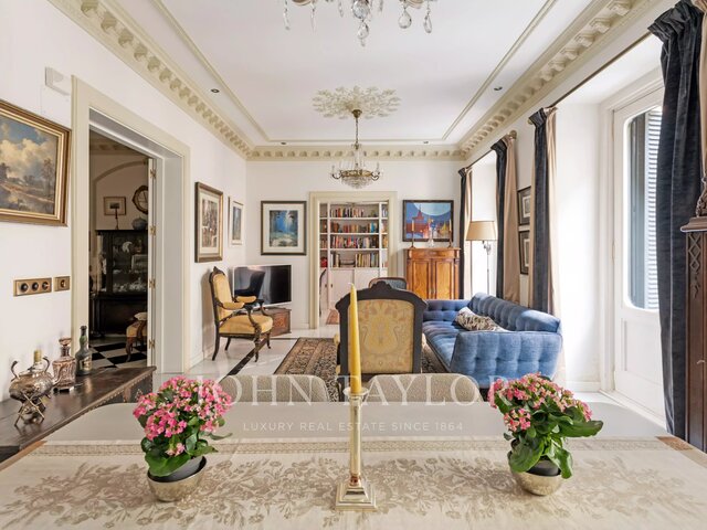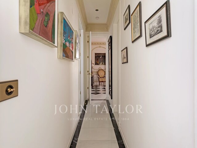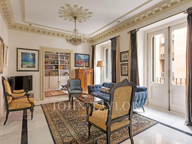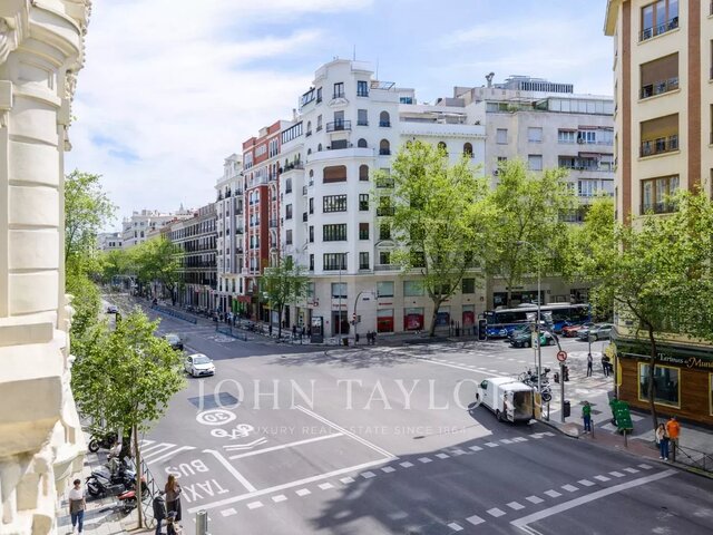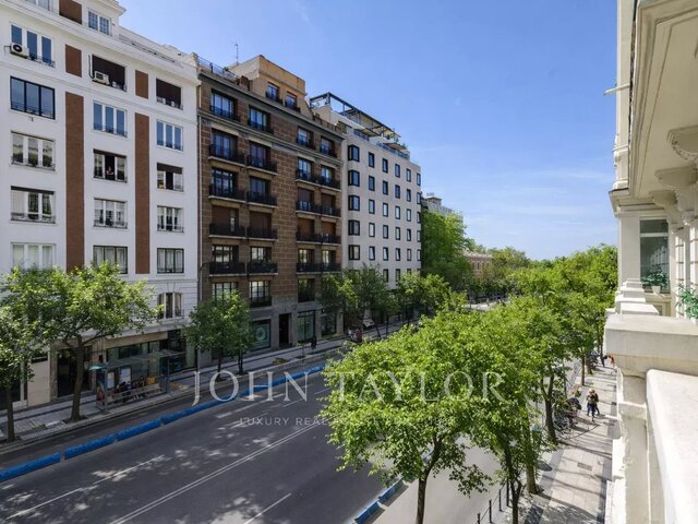 John Taylor exclusively presents this unique property, located on the second floor of a stately building built in 1900, excellently preserved. The property has 11 balconies overlooking the street, two of them are viewpoints typical of the period. Completely brand new, with an elegant and contemporary design by the prestigious architect Federico Rivera Río. We access the house through a welcoming hall, elegant and bright, with a stained glass window from the early twentieth century that leads to an extraordinary living / dining room and adjoining library, with 5 balconies facing south. The night area is composed of four bedrooms and four bathrooms: The master suite has four balconies that bathe the bedroom and bathroom in light. A second suite with its own bathroom/dressing room and two other bedrooms sharing a family bathroom. A guest toilet, a large service area with bedroom and bathroom for domestic service, as well as a large laundry area complete the complex. It also has a magnificent kitchen with central island with direct access to the dining room. The property has a concierge during regular hours. The price includes a storage room located on the roof of the building, which stands out for the size of its surface, and a parking space in the residents' parking lot of Antonio Maura. All the ingredients to make this a unique opportunity for location and performance. Los Jerónimos is a neighborhood in the Retiro district of Madrid. It is home to the Retiro Park and the Church of Los Jerónimos, from which it takes its name. It was created in 1865, on land that belonged to the former Buen Retiro Palace and was sold to the State by Queen Isabel II (1830-1904) to be urbanized. It is part of the so-called Landscape of Light next to the Paseo del Prado, declared a World Heritage Site on July 25, 2021. It is one of the most elegant and aristocratic neighborhoods of Madrid and its homes reach the highest prices per square meter of the capital. Among its most emblematic buildings are the Prado Museum, the Church of San Jerónimo el Real, the Royal Spanish Academy, the Madrid City Hall, the Ritz Hotel, the Palace of the Madrid Stock Exchange, the General Headquarters of the Navy and the National Museum of Decorative Arts. In the neighborhood of Los Jeronimos, in addition to the Retiro Park, is located since the eighteenth century, opposite the south facade of the Prado Museum, the Royal Botanical Garden.