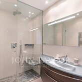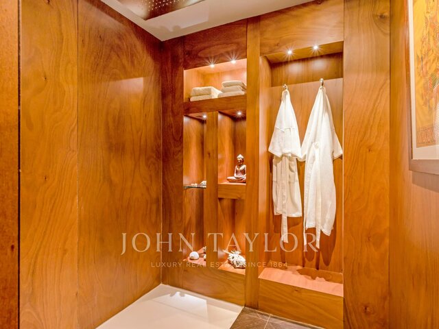 Ideally located within the prestigious Château Borelli, in the Parcs de Saint-Tropez, this flat, entirely renovated using top-of-the-range materials, spans the 2nd and 3rd floors, offering uninterrupted views over the Gulf of Saint-Tropez. Residents can enjoy a swimming pool, as well as all the amenities of the Parcs de Saint-Tropez, such as a private beach and round-the-clock security. The flat has a through view and benefits from optimum exposure, guaranteeing plenty of sunshine throughout the day. Thanks to its peaceful location, away from traffic, it is free from any noise pollution. It comprises 1st level: an entrance hall with guest toilet, a spacious living room opening onto a terrace with panoramic sea views, a fully equipped kitchen, dining room and a bedroom with shower room. 2nd level: a bedroom with en suite shower room, a bedroom with en suite bathroom, a hammam area, and a bedroom with dressing room. A service flat, cellar and garage complete this exceptional property.
