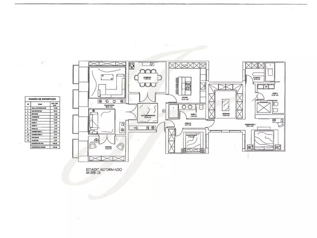 Impressive home completely renovated by a renowned architecture studio Situated on the eighth floor of a modern and well-maintained building, this exclusive property has an area of 253 m² and stands out for its careful renovation, high quality finishes, and extraordinary brightness. The home is distributed from a large entrance hall that leads to a spectacular living room with several areas, an integrated kitchen, and direct access to a pleasant habitable terrace facing East, ideal for enjoying natural light from the early hours of the day. The sleeping area consists of four spacious exterior bedrooms and three bathrooms. The master bedroom has a private terrace and a large storage area. Additionally, the home has a courtesy toilet for guests. Among its many attractions are abundant light, spaciousness, excellent layout, and high-quality finishes, making this property truly exceptional. The price includes a storage room and two large parking spaces with direct access to the home. The building offers concierge service, two elevators, and a representative entrance hall, providing comfort and distinction.