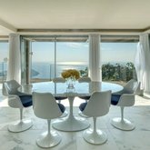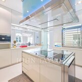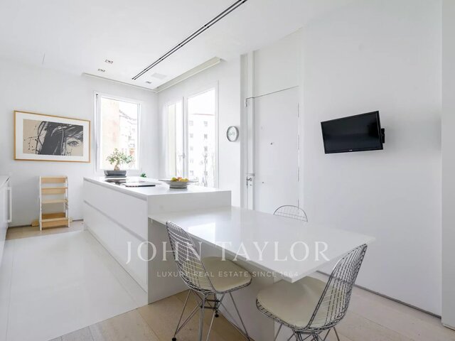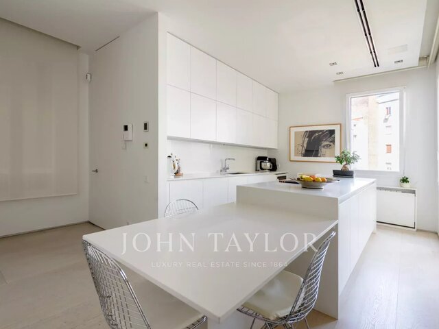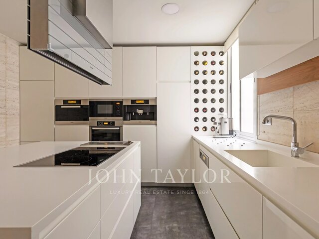 Located in one of the best areas of Madrid, this exceptional property combines international modern design with top-quality finishes. Created by a renowned interior design studio, it features noble materials such as dolomite marble and natural oak wood, giving the home a unique character. High ceilings and custom-made Italian furniture, along with advanced technologies such as the Casambi lighting control system and B&W sound system, create an atmosphere of luxury and sophistication. The property enjoys excellent natural light thanks to its large windows facing East and North on the exterior and West on the interior. The layout highlights a spacious reception area with an integrated dining room, seating up to twelve people, and a large living room that opens to a terrace with unobstructed views. The fully equipped kitchen, with high-end appliances and a wine cellar, seamlessly connects to the living room, while a second independent kitchen offers added functionality, including a laundry area, a service bed, and a bathroom, transforming this space into an independent apartment. The sleeping area consists of three bedrooms with en-suite bathrooms, spacious closets, and modern bathrooms finished with marble and wood. The Casambi system also allows the lighting to be adapted to the needs of each moment, creating relaxed and comfortable environments. Underfloor heating and cooling, powered by aerothermal energy, provide exceptional comfort with reduced energy consumption. Built in 1964 under the principles of functionalism, the building stands out for its free-standing design, providing three orientations for each apartment. The common areas are meticulously maintained, and the property includes two storage rooms, a parking space, and porter service every day of the week. A unique opportunity to enjoy the utmost luxury and comfort in one of the most exclusive areas of Castellana.