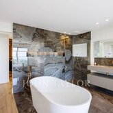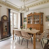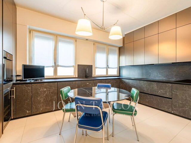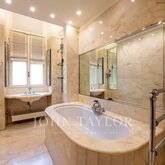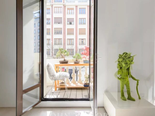 This unique property is located next to the Retiro Park, in a spectacular building with a classic facade. We especially highlight its four balconies and the imposing height of its ceilings that provide spaciousness and character to each room. The renovation has been carried out by a renowned team of Spanish designers, and every detail has been tailor-made for this apartment, including the elegant floor-to-ceiling doors that reinforce the feeling of sophistication. The main living room is an open and bright space, south facing with access to four impressive oversized balconies. The living room connects to the dining room and foyer. The kitchen is independent and bright, with dining area and large windows overlooking a quiet landscaped courtyard. The appliances are top of the range. The master bedroom is a complete suite, with a large dressing room and large windows. The en-suite bathroom is a space with personality, with marble double sinks and a huge power shower. This apartment offers a privileged location, a few steps from the Retiro, in the heart of Recoletos, with a luxury renovation in a stately building.