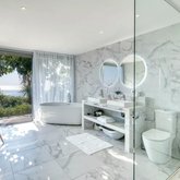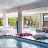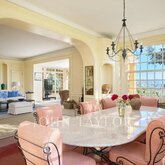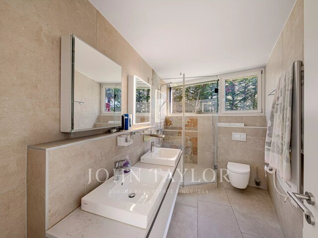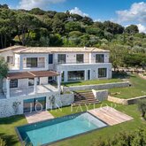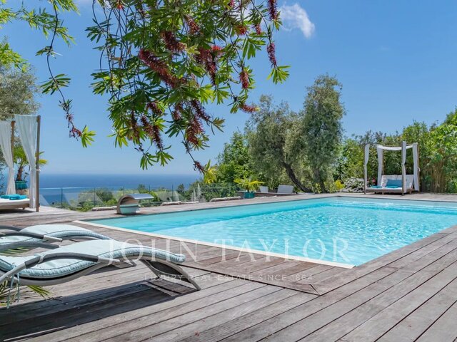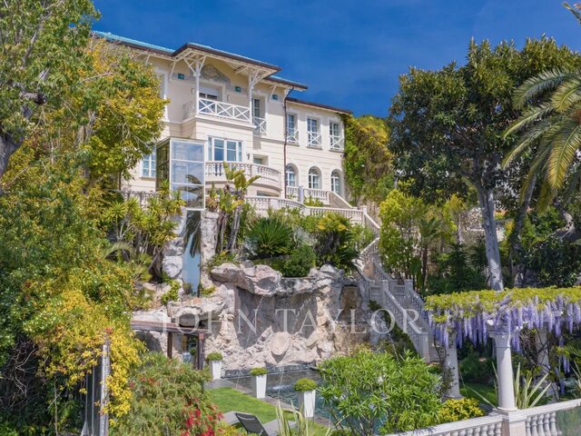 Boasting a flat garden of over 3.5 hectares, peace and quiet and uninterrupted views out to sea, this elegant, prestigious residence was completely renovated in 2016 and luxuriously decorated by Ralph Lauren in his chic, refined style. The property is located in an easily accessible residential area, just a few minutes from the village. The villa features a sumptuous entrance hall, an immense double living room with fireplace, a library with fireplace, a large dining room, a TV lounge, a well-equipped kitchen and 7 Suites, one of which is independent. Additional facilities include a billiard room, cinema, indoor swimming pool and garage for 2 vehicles. The villa's pleasant exteriors feature both covered and uncovered terraces. The outdoor pool area boasts a huge pool-house with summer kitchen, changing rooms and covered terrace. The pool measures 25m x 8m and is at the same height as the pool house. Easy access to the tennis court. Staff can also be accommodated on site: independent apartment, independent bedroom, possibility of a second independent bedroom.