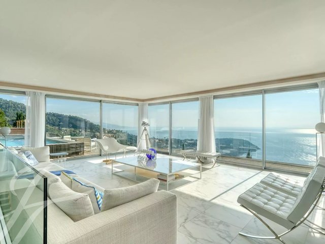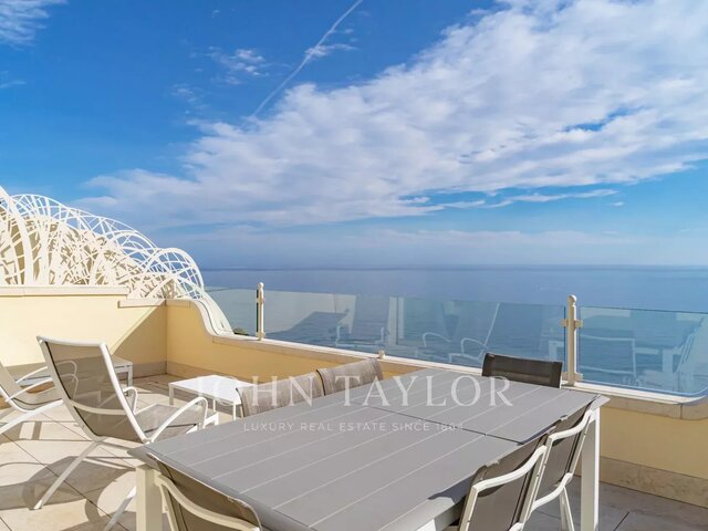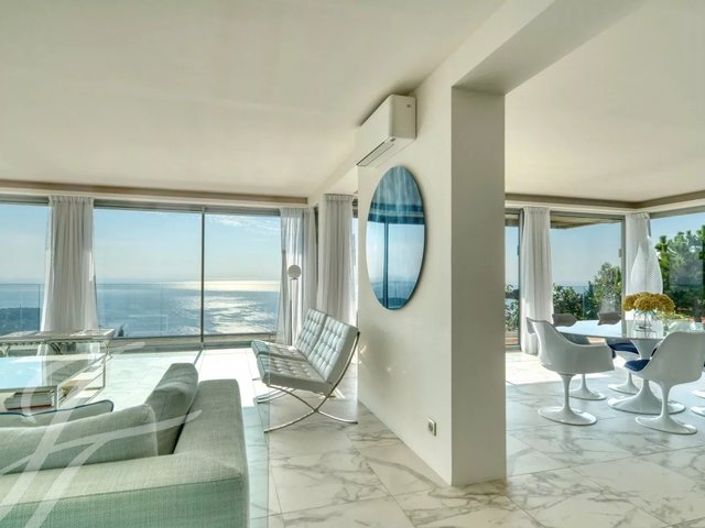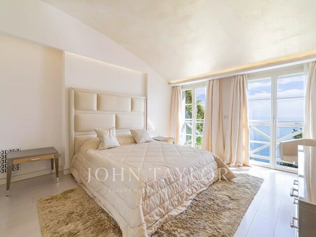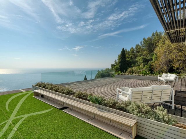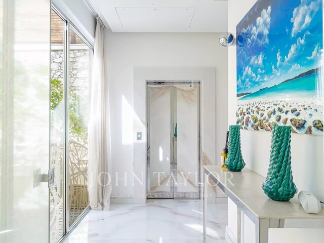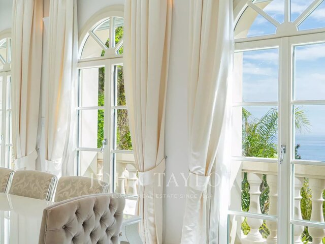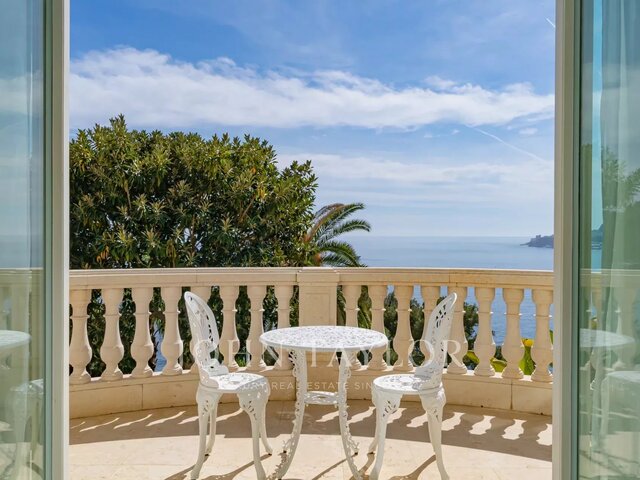 This villa-apartment of mostly 400 sq.m. is located in one of the most beautiful and elegant residences of the Riviera. On the seafront with private access to the sea by funicular, with a 24/7 guard service, magnificent gardens and a very nicve swimming pool for residents. Spread over 3 levels, the villa has an independent entrance, a private swimming pool and a lift serving all floors. It offers a very high quality of finishing combined with the beautiful sea view from all the levels. It is composed of an entrance hall, a double living room opening onto spacious terraces facing the sea, a kitchen and a dining room, 4 bedrooms each with its own bathroom and a private swimming pool with a summer kitchen, dining area and outdoor lounge. A laundry room. A double garage and a parking for 2 cars. An opportunity not to be missed to become the owner of this magnificent place facing the sea and offering an excellent quality of life...