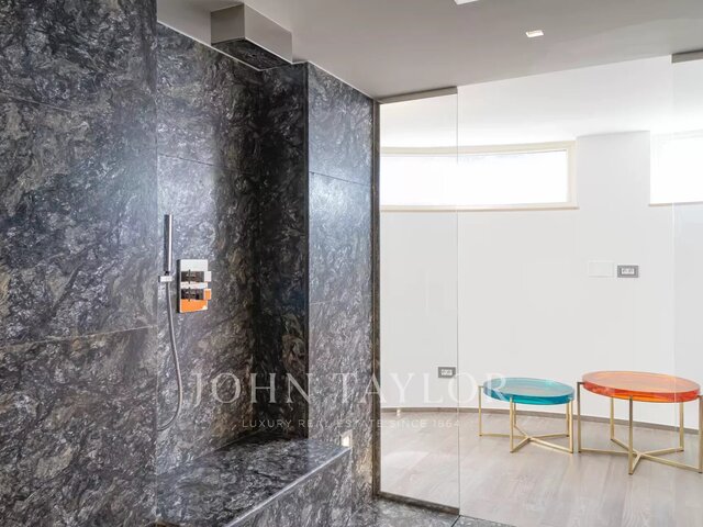 Exclusive. Paris 7. Saint Thomas d'Aquin Magnificent apartment located in a prestigious old condominium with janitor. With a surface area of 190 m², this duplex apartment on the top floors with elevator has been renovated to a very high standard. Offering beautiful views of the Eiffel Tower and the Dôme des Invalides, this property is composed as follows: 5th floor: - entrance gallery - south-facing double living room with dining room - separate fitted and equipped kitchen - bedroom with shower room 6th floor : - master bedroom with shower room, WC and dressing room - 3rd corner bedroom (now a fitness room) with shower room and sauna All bathrooms are marble, perfect layout with no loss of space, sun all day, air-conditioning throughout. Located in the heart of the Saint-Thomas d'Aquin district, one minute from rue du Bac. Possibility of purchasing furniture in addition to the price. A rare find in the neighborhood.