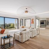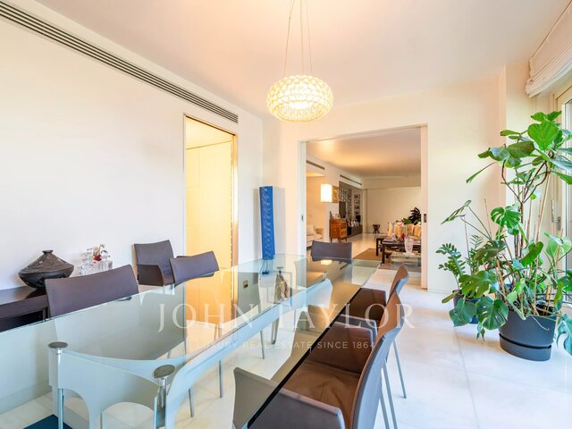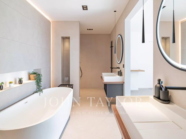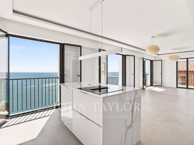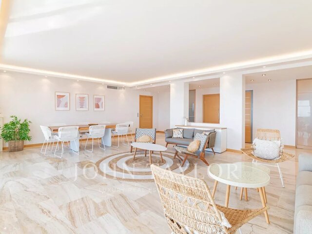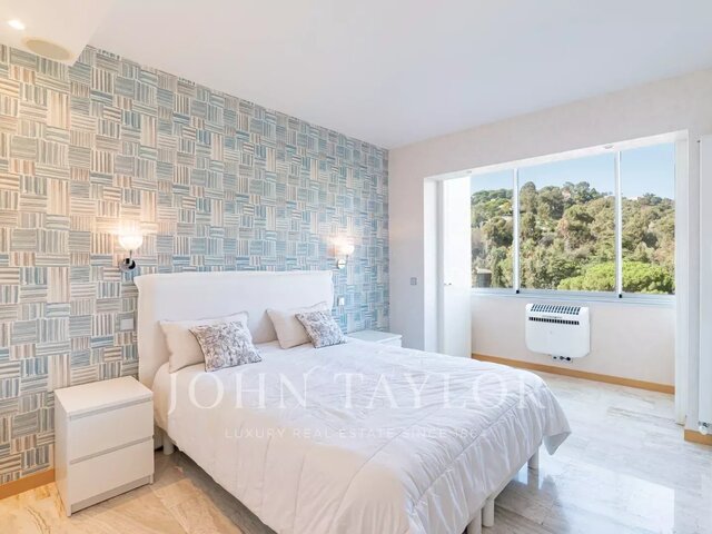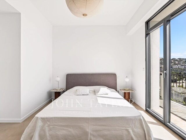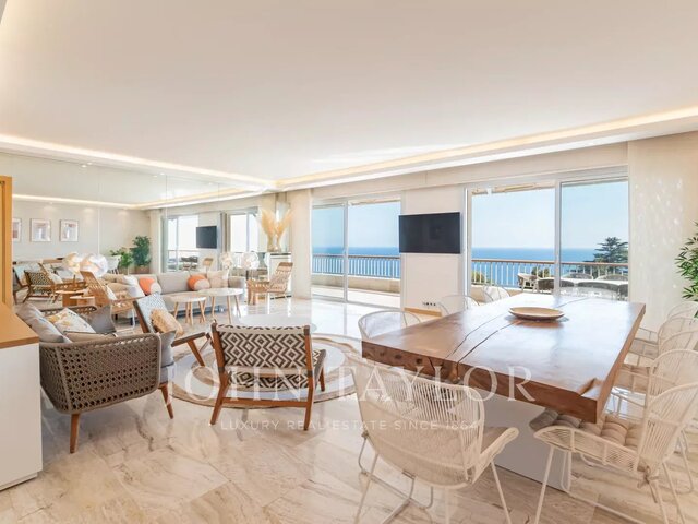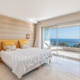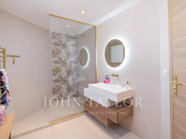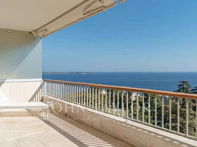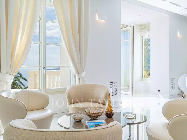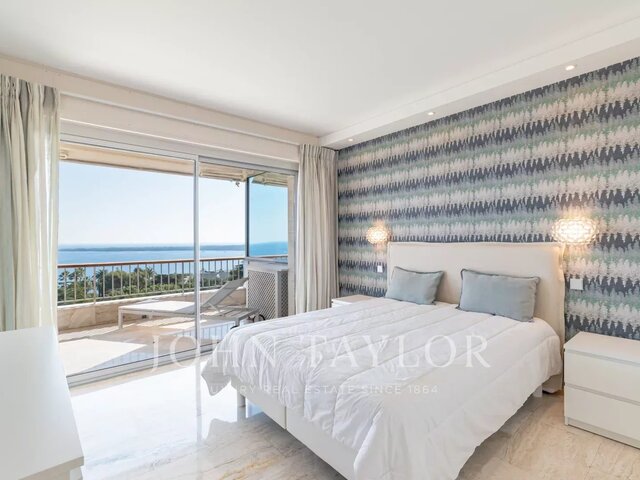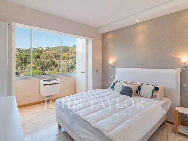 Located in the sought-after Californie district of Cannes, in a prestigious, secure residence with park and swimming pool, we offer this sumptuous 248 sq. m. apartment (215 sq. m. Loi Carrez and 33 sq. m. studio). This exceptional property boasts a superb 60 m² terrace, with breathtaking views over the Mediterranean and the Lérins islands. Entirely renovated by a renowned local architect, using noble materials of the highest quality, the apartment boasts a refined and luxurious contemporary style. Flooded with light and unoverlooked, it guarantees total privacy. It comprises an entrance hall, a vast living-dining room extending onto the terrace, an ultra-modern kitchen enclosed by a glass roof, a TV room, and a master suite with dressing room, bathroom, private access to the terrace and sea view. Two further en suite bedrooms have their own shower rooms and private balconies. A practical laundry room completes the space. An independent studio, two cellars and a parking lot complete the many assets of this unique property.