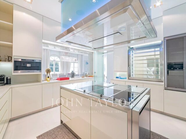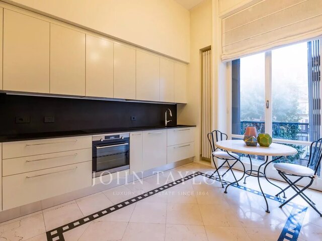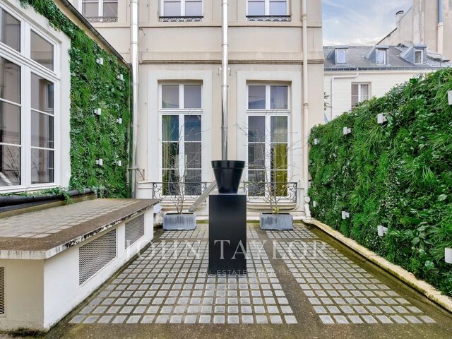 In the heart of one of the finest buildings on Avenue d'Iéna, directly overlooking Place des Etats-Unis, John Taylor Paris offers you this sublime 290 sqm triplex, completely refurbished and air-conditioned. Designed like a private mansion, with a 100 sqm private garden and a complete fitness area, this is a luxury family and reception complex in an ultra-secure environment. Just a stone's throw from rue de Chaillot shops, restaurants, palaces and prestigious local schools, this triplex will offer its owners an extraordinary lifestyle. Garden level: - Large entrance hall with stone staircase - 72 sqm living room with 4.30 m high ceilings, herringbone parquet flooring and marble fireplace - Fully-equipped mezzanine kitchen, top-of-the-range materials and equipment. - 100 sqm Garden, planted with trees and nicely screened, out of sight. Second floor : - 45 m² master suite - Two junior suites (25 and 20 m²) - 25 sqm modular space, now a guest suite, which can be converted into an office or TV room Basement: - Independent 22 m² studio, with its own entrance to the courtyard, for a professional or service studio. - Fitness area, with swimming pool (counter-current), sauna, gym, shower. A large parking space in the former stables can accommodate a large sedan or two city cars.