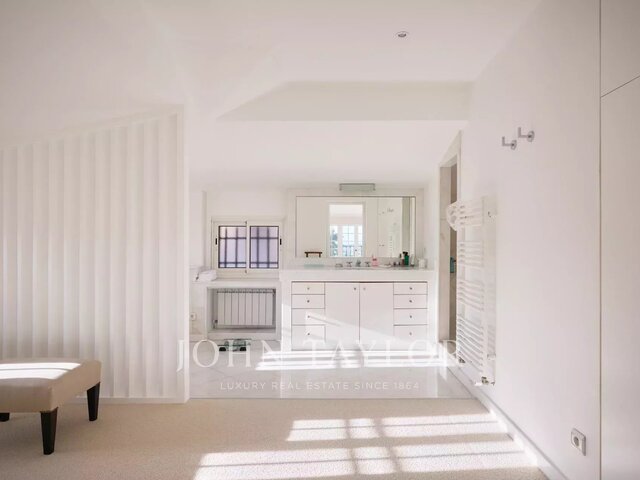 Located in a fully renovated 19th-century building in the heart of Chiado, this spacious apartment with 350m² is set in one of Lisbon’s most sought-after neighbourhoods. The layout is generous and well designed, with high ceilings, elegant proportions, and quality finishes throughout. It includes four bedrooms, three of them en suite, as well as a large living and dining area of approximately 80 m², filled with natural light and partial views of the Tagus River. Interiors combine classic features with modern comfort, including hardwood floors, custom fittings, and underfloor heating in all bathrooms and the guest WC. Every detail reflects quality and care, from the elegant flooring to the custom fittings, creating a home that balances classic charm with contemporary refinement. The kitchen is fully equipped and includes a bright dining space with ample storage. The property has private garage for two cars, with natural light and direct access from the street. Chiado is known for its cultural heritage, historic architecture, and central location. The apartment is just a short walk from theatres, galleries, restaurants, shops, and excellent public transport. A distinctive home offering space, comfort, and timeless character in one of Lisbon’s most prestigious neighbourhoods. John Taylor is one of the oldest and most prestigious international luxury real estate brokerage firms, with over 160 years of history dedicated to the representation of exceptional properties. In Portugal, John Taylor operates in Lisbon, Cascais and Comporta with an experienced and highly qualified team, delivering a bespoke service grounded in rigour, discretion, and in-depth market expertise. For further information about this property or to arrange a viewing, we invite you to contact John Taylor Portugal. We would be delighted to provide a professional and dedicated service.