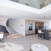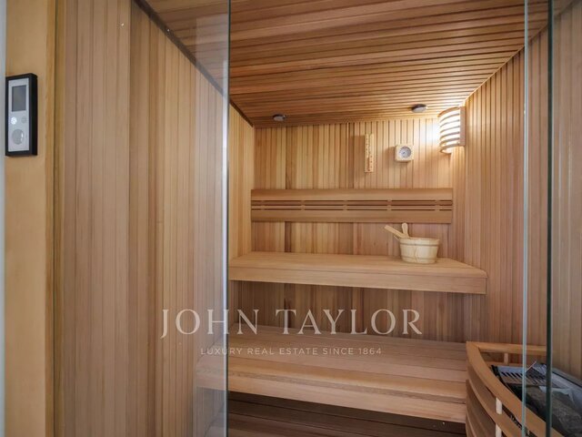 John Taylor presents this exclusive property in front of the golf course. Very modern structure and extreme qualities. The exterior enclosure of the house is made of different materials that highlight the volumetric variety of the whole. The bedroom area is characterized by metallic materials, while the service area of the house and related spaces have a concrete facade. the service area of the house and related spaces has an exposed concrete façade. Glass of different textures and opacities is the third material, together with steel, which completes the materiality of the exterior of the house. The composition of the enclosure ensures acoustic and hydrothermal insulation. Inside, given the spatial richness of the house and the juxtaposition of the spaces, the use of materials in walls, floors and ceilings is diverse (natural stone, metal, glass of different characteristics, ebony wood, plastic materials...). The entrance courtyard is presented as a space of transition between the impersonal world between the impersonal and dynamic world of the exterior and the comfortable and leisurely universe of the interior. The gurgling of water shows us the way. At the entrance there is an exhibition space. A room continues at double height of steel and glass that hides the access to the rooms. Museum. A space of great height, bathed in natural light. The art traps the environment. Kitchen designed exclusively by Ferrá Adriá, professional in its fires and plates. A steel sculpture that will delight the palate. All private areas, limited in their access by security doors, with code, to delimit the entrance of our privacy and provide these spaces with maximum security. Each space is characterized individually. Materials, geometry and natural elements interact to give each space its own entity. The spaces are versatile and admit multiplicity in their uses. The ground floor has an entrance hall, living room or museum, dining room, kitchen, office, elevator and three suites. The spaciousness of the house with 1721sqm, makes it feasible the visits. For this purpose, three suites have been designed on the upper floor of the house. In it, on 2 curtain wall corridors, we will also find the office, reading area, service room, and play area. In this society that leads us to live life with speed and stress, it is important to count on the grandeur of the water area of the house. The warm water takes over the entire space. Natural light slips through a skylight in the ceiling that exalts the emotions of tranquility, peace and freedom. Heated swimming pool, generously sized with relaxation areas, fireplace and relaxation areas, fireplace and chillout beds. In this universe could not miss the health benefits provided by the sauna and Turkish bath, dry heat in the sauna and moist heat in the Turkish bath. Gym equipped with the latest technology in machinery. Space for discotheque, meetings or celebrations room, equipped with the latest equipped as the best club in Madrid, even the nitrogen cooling machine, so that the evenings are even more even more pleasant evenings. DJ table The music, which is able to change the mood of the people, is very contemplated in all the spaces. The acoustic study of the house, by top professionals in the elaboration of loudspeakers, has designed a unique piped music in all the rooms. all the rooms. Meditation room. The walls, similar to an anechoic chamber anechoic chamber, cancel out all exterior and interior sounds. It is a room where traditional perceptions are altered to focus attention on the interior. The plot, with 4200sqm, is designed as a golf course within the house itself. golf course within the house itself. The life of the house extends outside the physical boundaries. Nature is incorporated into the architectural space, merging it with the interior. the interior. A true luxury within the reach of a select few.