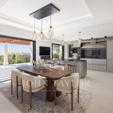 Discover a residential project where the finesse of architecture blends seamlessly with nature’s grandeur. Located in Sotogrande, one of the most luxurious developments in Europe, the perfect place for an enviable lifestyle. A life surrounded by nature that allows for an unparalleled experience of peace and serenity. This splendid home is skillfully integrated with the surrounding trees, fostering patios and walkways that promote a life immersed in nature. The estate encompasses three distinct areas: a tranquil spa, the magnificent main residence, and a welcoming guest house. Each section is uniquely tailored to provide an experience of unrestricted freedom and a deep connection with the natural environment. The architecture of the villa reflects the unique topography of the land, with a structure that follows the elongated, sloping shape of the terrain, while the reflective aluminium panels create an illusion of continuity between the structure and the forest. This design reduces the visual prominence of the house, emphasizing the beauty of the natural surroundings. The concept of zero energy consumption without sacrificing maximum comfort is the challenge of Villa 95. To achieve this, a geothermal system is used with solar panels and a system of batteries that generate enough energy for the house to function. All this can be achieved without sacrificing aesthetics, good materials and the greatest exclusivity. This property represents the ultimate masterpiece of Fran Silvestre Arquitectos, an architecture and design studio based in Valencia (Spain), formed by a large multidisciplinary group of professionals winner of multiple awards and with projects built on five continents. Ingeniously interwoven among the trees, outdoor spaces, patios and pathways that grant a life in constant contact with nature.