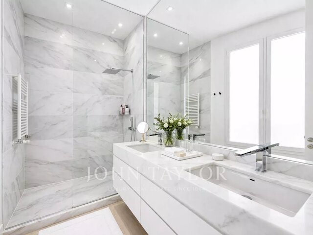 In a secured 1900's building dating, on the 4th floor with a lift, superb completely restored 389 sqm apartment. - Entrance gallery - Double living room providing an open view over the Bois de Boulogne, Louis Vuitton Foundation and La Défense. - Dining room - Fully equipped state-of-the art eat-in kitchen with marble fireplace - Parental suite with walk-in dressing room and shower room - Three well-proportioned bedrooms each with its own shower room - Second dressing room - Video room - Smoking room - Study Outstanding and bright apartment, facing full West. Very fine lay-out. Restored with high quality materials. All original features retained: parquet floor, mouldings, fireplace. High ceilings. Sound system and air-conditioning. Superbly appointed. 24-hour security. Caretaker’s house. Possibility to acquire, in addition within the building, a very large private garage accommodating three cars, as well as an adjacent garage suitable for a large vehicle. Janson de Sailly secondary shcool sectoring