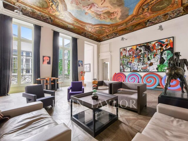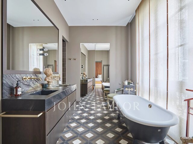 Exclusive. Paris 7. Saint Thomas Aquinas Magnificent apartment located in a prestigious old condominium with janitor. With a surface area of 190 m², this duplex apartment on the top floors with elevator has been renovated to a very high standard. Offering beautiful views of the Eiffel Tower and the Dôme des Invalides, this property is composed as follows: 5th floor: - entrance gallery - south-facing double living room with dining room - separate fitted and equipped kitchen - bedroom with shower room 6th floor : - master bedroom with shower room, WC and dressing room - 3rd corner bedroom (now a fitness room) with shower room and sauna All bathrooms are marble, perfect layout with no loss of space, sun all day, air-conditioning throughout. Located in the heart of the Saint-Thomas d'Aquin district, one minute from rue du Bac. Possibility of purchasing furniture in addition to the price. A rare find in the neighborhood.
