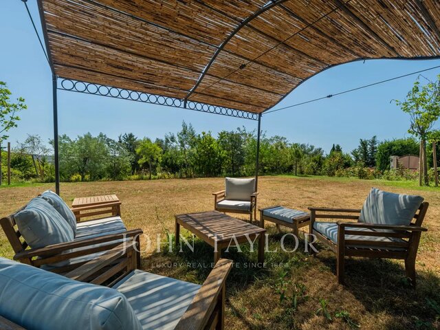Exceptional Historical, 15th-17th century Bastide for Sale in the Luberon, Provence Nestled in the breathtaking landscape of the Luberon, this prestigious estate embodies timeless elegance, historic charm, and luxurious comfort. Offering an elevated position with panoramic views over the Luberon valley, the property combines architectural grandeur with an extraordinary natural setting. A Refined Domain This remarkable estate comprises a three-story manor house, an attached two-story farmhouse, and a separate caretaker’s house, ensuring privacy and flexibility for its residents. The manor house welcomes you with a vaulted entrance, leading to a striking vaulted dining room and a grand double reception room. It features three en-suite bedrooms, a cozy library/small living room, a guest bathroom, and a beautifully appointed kitchen with a back kitchen and laundry room. The primary suite opens onto a private terrace, offering stunning views over the valley. The farmhouse boasts four bedrooms, three with en-suite bathrooms, and a spacious living area/TV room, seamlessly connected to a terrace that leads to the garden. The independent caretaker’s house, with its living room, bedroom, bathroom, and mezzanine, is conveniently linked to the manor house via the laundry room, ensuring effortless access while maintaining discretion. Expansive Grounds with Unique Features Set within a park adorned with ancient trees over 200 years old, the estate’s award-winning garden is meticulously designed to provide a serene and shaded retreat. The garden is planted with evergreens assuring its structure and pleasure all year round enriched with a variety of trees, creating a natural haven with 12 outdoor seating areas, each thoughtfully positioned beneath planted tress for shade and tranquility. The estate offers two separate entrances with unconnected driveways, each leading to designated parking areas for the main residence and service access, ensuring discretion and convenience. For those who favor exclusive accessibility, the estate accommodates helicopter landings, elevating the property’s prestige even further. A Timeless Masterpiece in Provence Combining authenticity and sophistication, this extraordinary estate provides an unparalleled living experience in one of the most coveted regions of Provence. Perfectly designed for luxurious living and unforgettable moments, it is a rare opportunity to own a piece of history in an enchanting setting.