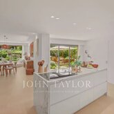 John Taylor Luxury Real Estate is promoting an impressive single-family house in concrete of different textures and unique design in the exclusive area of Valdemarin. Designed by the prestigious architects Joaquín Torres and Rafael Llamazares of studio A-cero, backed by different awards throughout his successful career, among which is this excellent and unique home called Open Box, where volumes, light and materials are their hallmark. DISTRIBUTION: MAIN FLOOR: Main living room with dining room, TV room, kitchen, courtesy toilet, office, games room, guest room with bathroom. The house is very bright with large windows, in some cases 10 m, with metal locks by SCHÜCO and TECNHAL doors. It is accessed through an 8 m high glass door which leads to a spacious 22 m² hall leading to the main living and dining room with a double height of 106 m². There is a gas fireplace with remote control of 6 meters long that divides the main living room from the TV room of 33 m² which is accessed by going down 4 steps. The entire wall of the house overlooking the outdoor pool of 16m*5m would be glass windows which makes a glass wall of about 28 meters. Behind the TV room is the children's playroom followed by the guest room with its complete bathroom both rooms with access to the pool overlooking the garden and the pool. On this floor would also be the office, with exit to the garden, a courtesy aces, as well as mutile built-in wardrobes. The white corian kitchen by BOFFI, with GAGGENAU induction hob and SUBZERO oven with two glazed walls leading to the garden and with a large daily office for crockery, pantry etc. and a cleaning room. There are many built-in wardrobes throughout the house and floor to ceiling doors of 2.70 cm (height) of 12 cm thick. TOP FLOOR: you go from two stairs, the main one would go up to three large and bright rooms each with its bathroom with glass walls balance and Corian furniture. A 10m glass walkway would then give way to the spacious 120m diaphanous suite plus a 22m² double dressing room that is hidden by a wall with a Mondrian mirror set. 3*3 TEUCO Jacuzzi. Shower of 3,8m². The room has a gas fireplace with remote control in a custom-made cabinet with many wardrobes hidden in the same Mondrian dressing room with a dressing table in the background. The television with Future Automation support is hidden in the ceiling. At the back of the room would be the second staircase that connects the 3 floors. Basement: a practical service area with two bedrooms, bathroom and living room. with direct access to the 30m long English courtyard with a line of cypresses, Garage for 6 cars fitted out for party room with coloured lights on the ceiling. Laundry room with sink of 22 m². Storage room of 32 m² Four gardener used as a second storeroom. Installations room with double boiler. Highlight that this is a fabulous plot with a consolidated garden with swimming pool and a large porch with TV also hidden in the ceiling. Domotics with KNX system integrated with security, lighting, blinds, air conditioning and underfloor heating throughout the house. Pushbuttons lighting and blinds by Berker. Natural stone in interior and exterior flooring in Italian Basaltita. Red Int and ext category 8 wiring. 3 Supports TVs 50" integrated in ceilings of Future Automation. Technical lighting for the entire house of the prestigious Italian firm Viabizzuno.
