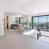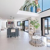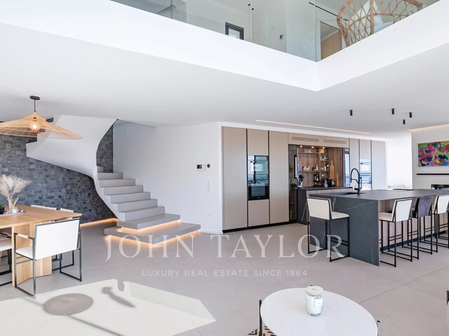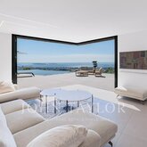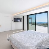 Discover this extraordinary villa that blends contemporary luxury with stunning panoramic views, located in one of the most exclusive areas of Ibiza. Set in an elevated position within a private and secure community, this property offers an experience of peace and privacy with 24-hour gated access. On the upper level, the villa features four spacious bedrooms, all with en-suite bathrooms and walk-in closets. Two of them are expansive master suites with direct access to private terraces that offer spectacular views of Ibiza town and Talamanca Bay. The main floor offers an open-concept living and dining area that seamlessly connects to a kitchen equipped with state-of-the-art appliances, perfect for gourmet cooking enthusiasts. This level also includes an elegant guest bathroom and a functional laundry room. All rooms open to generous terraces offering uninterrupted views and leading to a stunning outdoor area with a dazzling pool, ideal for relaxing or entertaining. An internal staircase leads to the lower level, where panoramic views remain a highlight. This floor includes four additional bedrooms, three bathrooms, and three versatile rooms that can be used as extra bedrooms, a private gym, a cinema room, or any other desired purpose. At the top of the property is an exclusive garage designed as a showroom, with space for several vehicles. Additionally, the villa is crowned with a large terrace the size of the property, ideal for social gatherings, sunbathing, or simply enjoying the views in complete privacy. This villa is the perfect retreat that combines modern design, elegant living spaces, and unparalleled views, making it an ideal choice for those seeking the best of Ibiza.