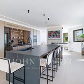 Extraordinary newly built villa in Nova Santa Ponsa! This modern gem stands out for its timeless design and local details. With a plot of 2.030 m² and 984 m² built on 3 levels, it offers an unrivalled living experience. From the impressive entrance, you enter a bright living room with fireplace and views of the pool and garden. The open plan kitchen with Miele appliances and a wine cellar is perfect for unforgettable dinners. There is also an outdoor kitchen ideal for barbecues. The upper floor houses a master suite with private balcony, dressing room, en-suite bathroom and outdoor shower, along with 4 further bedrooms with en-suite bathrooms. In the basement, you will find a fitness and spa area with Jacuzzi and sauna, home cinema, wine cellar and underground parking for 4 cars. The tropical-Mediterranean exterior features a 20 m saltwater pool, terrace, shaded areas and a 200 m² lawn. Enjoy the sun all day long in this perfect location. Contact us for more information! Nova Santa Ponsa, a real hidden treasure in the southwest of Mallorca. This privileged area is a haven for those seeking an elegant lifestyle in natural surroundings. In Nova Santa Ponsa, one is immediately captivated by the idyllic surroundings. The magnificent high-end villas rise majestically, offering panoramic views of the sea and the surrounding lush vegetation. The heart of Nova Santa Ponsa beats in its impressive marina, Port Adriano. Designed by renowned architect Philippe Starck, this world-class harbour is home to exclusive luxury yachts. The crystal-clear beaches invite you to relax, enjoy water sports or enjoy a cocktail in one of the elegant beach bars. Golf lovers will feel like in paradise in Nova Santa Ponsa, as it has some of the most prestigious golf courses on the island. Nova Santa Ponsa offers a wide range of quality services such as fine dining restaurants, exclusive boutiques, luxury spas and excellent sports facilities. It is also strategically located close to other areas of interest, such as the historic city of Palma, where you can enjoy a variety of cultural, shopping and entertainment activities.