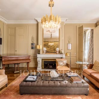 Paris 16 - Victor Hugo Avenue Victor Hugo/Henri Martin, on the 3rd floor of a luxury building, superb 347 sq.m. apartment, luxuriously renovated, offering vast and beautiful spaces with 3.50 m high ceilings, including : - A beautiful entrance gallery, - A large corner lounge with balcony, - A dining room, - A fully-equipped galley kitchen, - A study - A master suite with dressing room and marble bathroom, - Three bedrooms, each with its own shower room and toilet, - A sports room (5th bedroom), - A laundry room, - Guest toilet. - Plenty of built-in storage. Very sunny (South/East exposure), air-conditioned apartment. Plan perfectly dividing reception and private areas. Janitor in the building. Renovated high-quality common areas. A cellar completes this property. Parking solutions in the immediate vicinity.