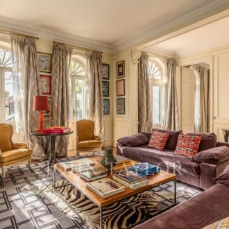 Located in a fully renovated 19th-century building in the heart of Chiado, this spacious apartment with 350m² is set in one of Lisbon’s most sought-after neighbourhoods. The layout is generous and well designed, with high ceilings, elegant proportions, and quality finishes throughout. It includes four bedrooms, three of them en suite, as well as a large living and dining area of approximately 80 m², filled with natural light and partial views of the Tagus River. Interiors combine classic features with modern comfort, including hardwood floors, custom fittings, and underfloor heating in all bathrooms and the guest WC. Every detail reflects quality and care, from the elegant flooring to the custom fittings, creating a home that balances classic charm with contemporary refinement. The kitchen is fully equipped and includes a bright dining space with ample storage. The property has private garage for two cars, with natural light and direct access from the street. Chiado is known for its cultural heritage, historic architecture, and central location. The apartment is just a short walk from theatres, galleries, restaurants, shops, and excellent public transport. A distinctive home offering space, comfort, and timeless character in one of Lisbon’s most prestigious neighbourhoods.