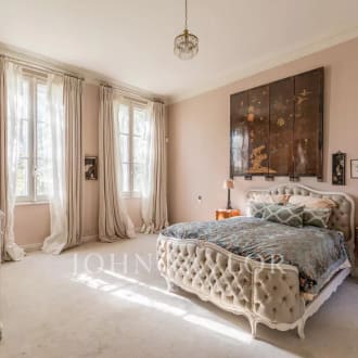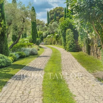 In a very quiet and most private setting, the elegance and refinement of a historic property in perfect condition, built in 1950 by Héléna Rubinstein with the renowned architect Louis Süe, comprising a main house of 491 sq.m living space, two guest houses, a caretaker's accommodation and a former sheepfold renovated throughout, amidst enchanting grounds of 31 523 sq.m. The ground floor of the main house features an office, and three bedrooms - each with an en-suite shower room. The garden level includes a reception room, a games room, the living and dining room with adjoining kitchen, utility room and laundry room. The first floor is dedicated to the master suite with dressing room and complete bathroom, as well as a 5th suite with shower room. The first guest house encompasses a living room, a kitchen, 2 bedrooms with adjoining shower rooms. The second guest house comprises a living and dining room, an open-plan kitchen with utility room and laundry room. On the 1st floor, three bedrooms, two shower rooms and a full bathroom. The caretaker's house of approximately 70 sq.m offers a living room, a kitchen, two bedrooms, a bathroom and includes three closed garages. An old sheepfold of 86 sqm living space, tastefully renovated throughout, called 'La Maison des Artistes' features a large living room, a dining room and open kitchen, a spacious bedroom with shower room. Five closed garages in all, 5 gates. The park is planted with 450 olive trees, includes several springs, a heated swimming pool and a petanque pitch. A timeless journey for lovers of history and architectural references in a classy setting.