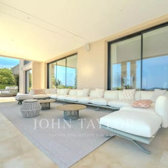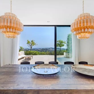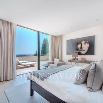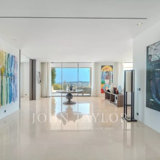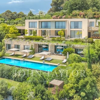 Nestled in the heart of a prestigious gated estate in Mougins, this new contemporary villa of 700 sqm offers a luxurious and modern property set in approx. 2700 sqm of parc. From the moment you arrive, you'll be seduced by the volumes, with a magnificent living area boasting 6m high ceilings and large, south-facing bay windows, creating a bright and welcoming atmosphere. The five en suite bedrooms offer privacy and comfort, while leisure facilities come with a heated swimming pool, sauna, fitness area, wine cellar, play room and a magnificent cinema room. A closed garage for up to four cars, heated for added convenience, and an elevator complete the exceptional features of this exclusive property. A perfect blend of contemporary elegance and luxury amenities.