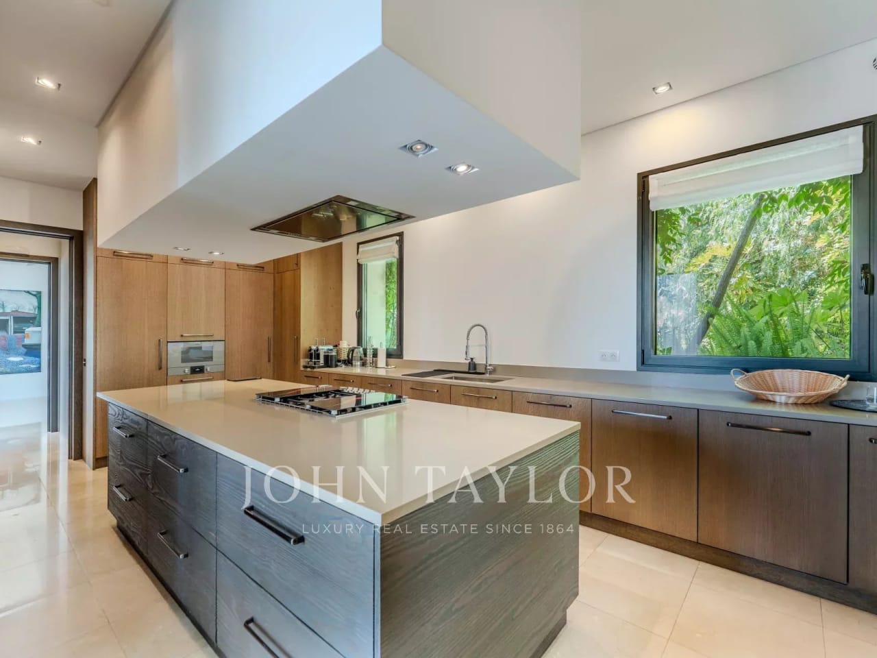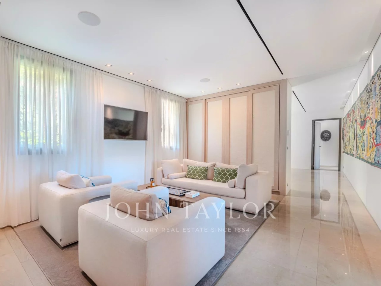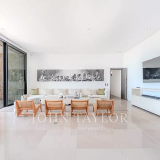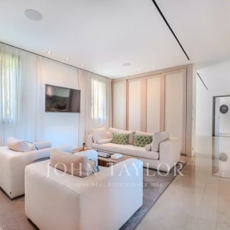 John Taylor Luxury Real Estate is promoting an impressive single-family house in concrete of different textures and unique design in the exclusive area of Valdemarin. Designed by the prestigious architects Joaquín Torres and Rafael Llamazares of studio A-cero, backed by different awards throughout his successful career, among which is this excellent and unique home called Open Box, where volumes, light and materials are their hallmark. DISTRIBUTION: MAIN FLOOR: Main living room with dining room, TV room, kitchen, courtesy toilet, office, games room, guest room with bathroom. The house is very bright with large windows, in some cases 10 m, with metal locks by SCHÜCO and TECNHAL doors. It is accessed through an 8 m high glass door which leads to a spacious 22 m² hall leading to the main living and dining room with a double height of 106 m². There is a gas fireplace with remote control of 6 meters long that divides the main living room from the TV room of 33 m² which is accessed by going down 4 steps. The entire wall of the house overlooking the outdoor pool of 16m*5m would be glass windows which makes a glass wall of about 28 meters. Behind the TV room is the children's playroom followed by the guest room with its complete bathroom both rooms with access to the pool overlooking the garden and the pool. On this floor would also be the office, with exit to the garden, a courtesy aces, as well as mutile built-in wardrobes. The white corian kitchen by BOFFI, with GAGGENAU induction hob and SUBZERO oven with two glazed walls leading to the garden and with a large daily office for crockery, pantry etc. and a cleaning room. There are many built-in wardrobes throughout the house and floor to ceiling doors of 2.70 cm (height) of 12 cm thick. TOP FLOOR: you go from two stairs, the main one would go up to three large and bright rooms each with its bathroom with glass walls balance and Corian furniture. A 10m glass walkway would then give way to the spacious 120m diaphanous suite plus a 22m² double dressing room that is hidden by a wall with a Mondrian mirror set. 3*3 TEUCO Jacuzzi. Shower of 3,8m². The room has a gas fireplace with remote control in a custom-made cabinet with many wardrobes hidden in the same Mondrian dressing room with a dressing table in the background. The television with Future Automation support is hidden in the ceiling. At the back of the room would be the second staircase that connects the 3 floors. Basement: a practical service area with two bedrooms, bathroom and living room. with direct access to the 30m long English courtyard with a line of cypresses, Garage for 6 cars fitted out for party room with coloured lights on the ceiling. Laundry room with sink of 22 m². Storage room of 32 m² Four gardener used as a second storeroom. Installations room with double boiler. Highlight that this is a fabulous plot with a consolidated garden with swimming pool and a large porch with TV also hidden in the ceiling. Domotics with KNX system integrated with security, lighting, blinds, air conditioning and underfloor heating throughout the house. Pushbuttons lighting and blinds by Berker. Natural stone in interior and exterior flooring in Italian Basaltita. Red Int and ext category 8 wiring. 3 Supports TVs 50" integrated in ceilings of Future Automation. Technical lighting for the entire house of the prestigious Italian firm Viabizzuno.