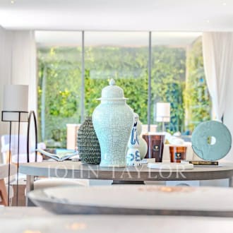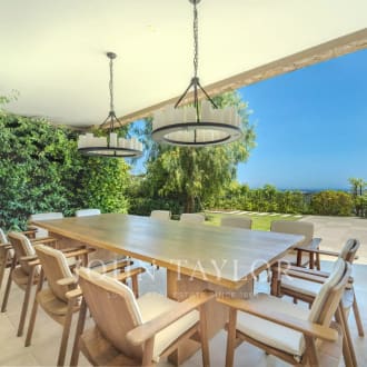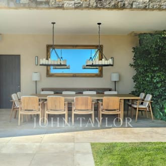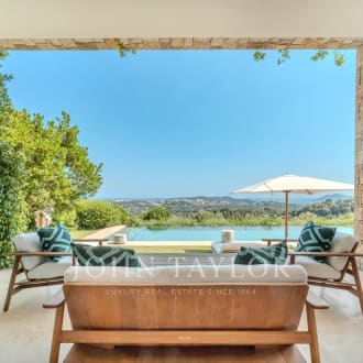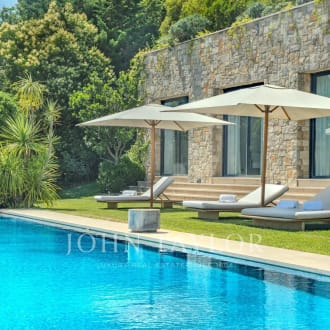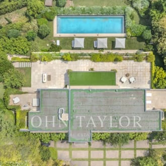 Boasting a flat garden of over 3.5 hectares, peace and quiet and uninterrupted views out to sea, this elegant, prestigious residence was completely renovated in 2016 and luxuriously decorated by Ralph Lauren in his chic, refined style. The property is located in an easily accessible residential area, just a few minutes from the village. The villa features a sumptuous entrance hall, an immense double living room with fireplace, a library with fireplace, a large dining room, a TV lounge, a well-equipped kitchen and 7 Suites, one of which is independent. Additional facilities include a billiard room, cinema, indoor swimming pool and garage for 2 vehicles. The villa's pleasant exteriors feature both covered and uncovered terraces. The outdoor pool area boasts a huge pool-house with summer kitchen, changing rooms and covered terrace. The pool measures 25m x 8m and is at the same height as the pool house. Easy access to the tennis court. Staff can also be accommodated on site: independent apartment, independent bedroom, possibility of a second independent bedroom.