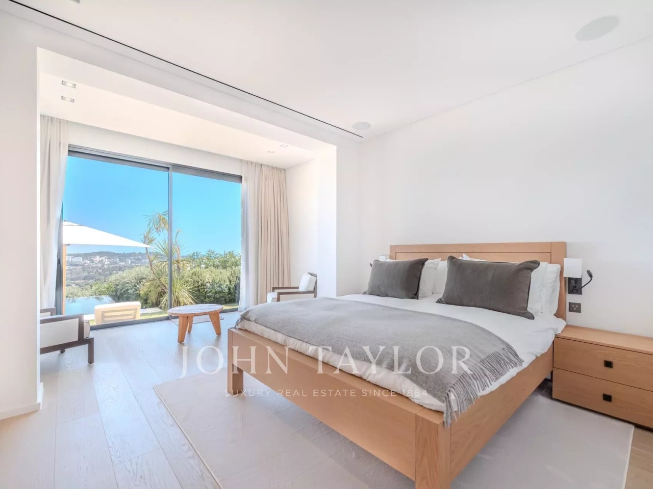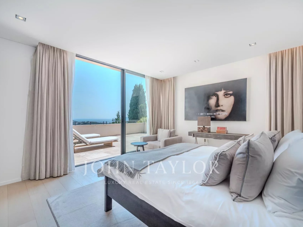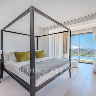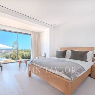 This luminous residence, with its high ceilings and natural materials, combines authenticity and refinement. From the reception areas and bedrooms to the pool house, panoramic views reveal the sea, the Lérins islands, the bay of Théoule and the Estérel massif. A majestic entrance hall opens onto a double living room, study and summer terraces, inviting you to take full advantage of this exceptional setting. The seven en suite bedrooms offer optimum comfort. The master suite features a private lounge, spacious dressing room, bathroom and terrace with panoramic views. The garden level offers a complete wellness area with pool house, massage rooms, gym, hammam and sauna. More than a residence: an incomparable living experience.