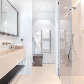 John Taylor presents a luxurious 4-bedroom townhouse on Bluewaters Island, Dubai, offering breathtaking sea and promenade views. This stunning 2-story property spans an expansive 630 sq.m and is designed to deliver ultimate luxury and modern comfort. With a contemporary layout, private swimming pool, and fully upgraded interiors, this move-in-ready home blends privacy, elegance, and vibrant island living. Located on Dubai’s iconic Bluewaters Island, this exclusive residence is perfect for those seeking a premium lifestyle in one of the city’s most prestigious locations. Key Property Features: * Spacious layout: 4 generously sized bedrooms across two stories * Spectacular living space: A double-height living room with 6-meter ceilings and panoramic sea views * Outdoor luxury: A private swimming pool, expansive terrace, and a courtyard with a barbecue area * Functional design: Includes a maid’s room, home office, and a dedicated storage/warehouse area * Convenience: 3 private parking spaces and a separate service entrance * Turnkey luxury: Fully furnished, upgraded interiors, and ready to move in Bluewaters Island Amenities: * Prime location: Sea-view residences in Dubai’s premier island destination * World-class recreation: Access to four pools with sea views and a two-floor gym * Active lifestyle: Basketball courts and walking promenades * Vibrant community: Over 50 restaurants, cafes, and retail outlets nearby * Beach access: Enjoy pristine beaches at the Banyan Tree Dubai Hotel * Seamless connectivity: Pedestrian and vehicle bridges for quick access to JBR and Dubai Marina This stunning property delivers a perfect balance of modern luxury and community living, set in one of Dubai’s most iconic locations. Contact John Taylor Dubai today for a private viewing or to get more information.