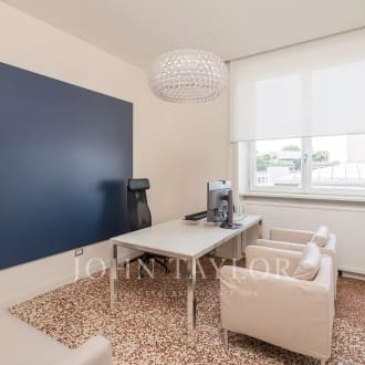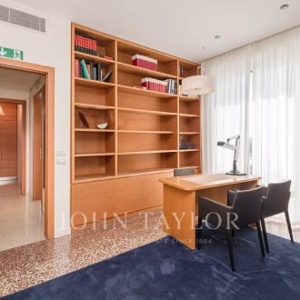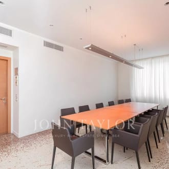 John Taylor is proud to exclusively present a truly unique property: a spectacular penthouse with panoramic views and four terraces located in the prestigious Salamanca neighbourhood. The refurbishment, by renowned architect Miguel Molins, makes masterful use of the spaces, maximising the extraordinary natural light provided by its three orientations and achieving a modern, elegant and cheerful atmosphere. The property occupies the entire eighth floor of the building and has a perfectly ordered layout around the large central courtyard in two distinct areas: a social area and a private area. As soon as we enter, we find the large living-dining room, flooded with light and facing West. The terrace, nearly 20 m², is integrated into the living room through floor-to-ceiling sliding glass doors that allow you to enjoy the beautiful panoramic views. A charming guest toilet completes the social area. The kitchen, with its modern design and top-of-the-range appliances, connects the social area with the private area. It stands out for its excellent natural light thanks to its large south-facing windows. The private area consists of four bedrooms, all with en-suite bathrooms, and all with their own access to terraces. There is also a separate area for laundry service. This luxurious penthouse is equipped with underfloor heating and cooling (aerothermal) and air conditioning in all rooms. Both systems are controlled from a single panel in each room (Airzone). The qualities are first class with natural oak floors laid in herringbone pattern, motorised thermal slat blinds with sectorised domotics, floor to ceiling doors made to measure, high efficiency LED lighting, data and antenna sockets in every room with fibre optic network, Cortizo aluminium windows and fittings, etc.