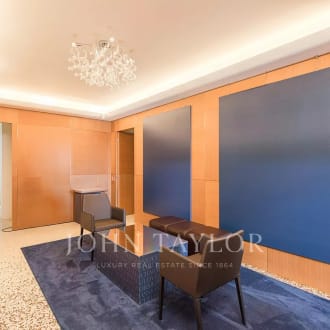 In one of the most prestigious residences on the Croisette, near Port Canto, with a superb view over the Bay of Cannes, magnificent duplex apartment with 580 m² of living space. The apartment's seductive decor, top-of-the-range amenities, 428 m² of terraces and indoor rooftop pool (7m x 3.5m). On the 7th floor, the apartment comprises an entrance hall opening onto a beautiful reception room with living room and dining room opening onto terrace, fully equipped kitchen, wine cellar, laundry room, storage room, master bedroom with dressing room, full Madame bathroom and Monsieur shower room, bedroom opening onto terrace with shower room, as well as a guest toilet. Two further bedrooms with en suite bathrooms overlooking the Croisette and a fifth bedroom with en suite shower room and view of Cap d'Antibes. Children's dance and games room. On the 8th floor, the apartment comprises an entrance hall opening onto a beautiful reception room with living room and dining room opening onto a terrace, fully equipped summer kitchen with wine cellar, guest toilet, as well as an indoor swimming pool (7mx3.5m), sauna, hammam and shower. 3 garages, 3 utility rooms and a cellar.