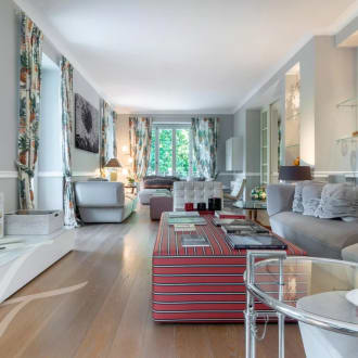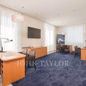 Paris 7. Varenne - Matignon. Exceptional architect-designed house adjoining the gardens of the Hôtel Matignon, in absolute calm. Designed as a very large loft, with a total surface area of approx. 850 m2 (575 m2 living space), it extends over 3 main levels, around a 101 m2 garden, with a swimming pool. Garden level : - entrance hall - huge reception areas opening onto the garden - dining room under glass roof - fitted and equipped kitchen - large win cellar - bedroom with shower room First floor : - superb master with cathedral ceiling - bathroom / shower / dressing room - 3 further bedrooms with en-suite shower rooms - study - duplex office Basement - beautiful gym - sauna and shower room - storage space - boiler room - vault - 3-car garage Air-conditioned, very quiet, sunny property, hidden from view. Large bay windows let the sun shine into every room. Exceptional, secure setting. A very rare property in a highly sought-after area.