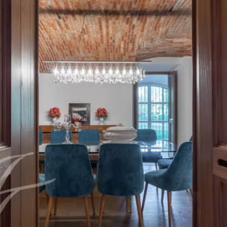 This spectacular apartment has been recently refurbished and has been acclaimed by leading national and international interior design publications for its personality and elegance. In this house every detail has been thought to provide functionality, there are large closets distributed throughout the house barely noticeable, the walls, moldings and even the door handles are unique pieces. In addition to the interior design, this apartment stands out for its brightness, open to two wide avenues in which it has a corner. It has 3 orientations, the living room with south orientation and large windows, all rooms completely exterior with unobstructed views and no neighbors in front. The kitchen is surprising for its spaciousness and for being a meeting space for its large countertop. The apartment is equipped with domó Blinds, air conditioning and heat pump adjustable from the mobile. It has underfloor heating in the bedrooms, bathrooms and hallways. The materials are of the highest quality, where we can find rustic oak wood floors and marble. Upon entering the building we see a solid entrance of marble and wood with intercom. The flat has storage room and option to buy a parking space in the same building. Its location in one of the best streets of Nueva España, is characterized by its entertainment venues, wide and tree-lined avenues, gyms, iconic restaurants, for its tranquility and green areas. The furniture was made exclusively for this property and can be purchased separately with the purchase of the house.