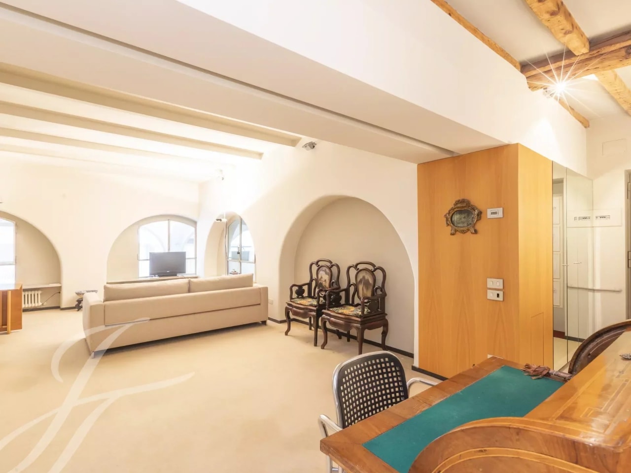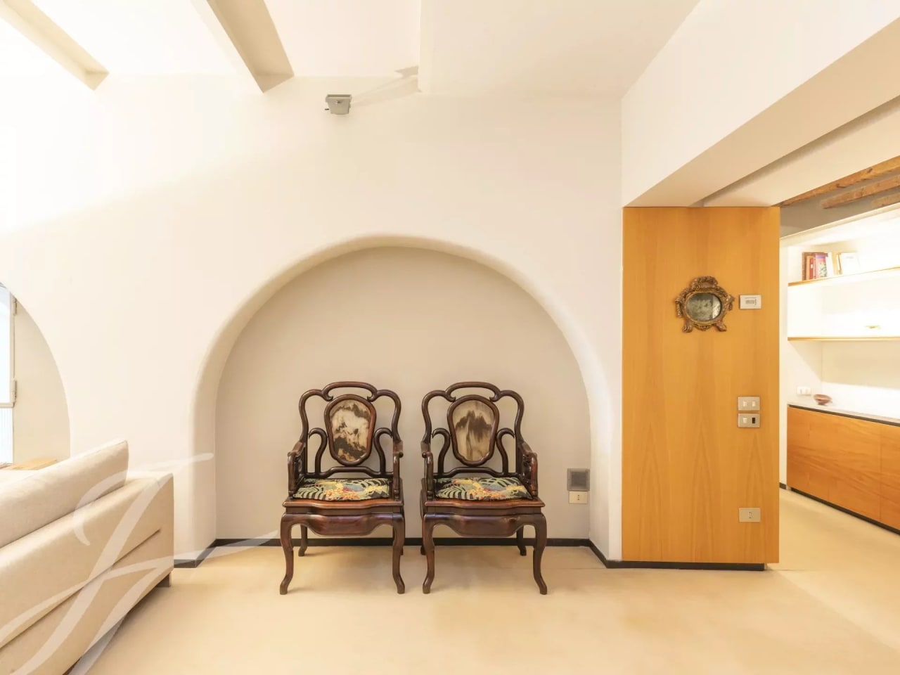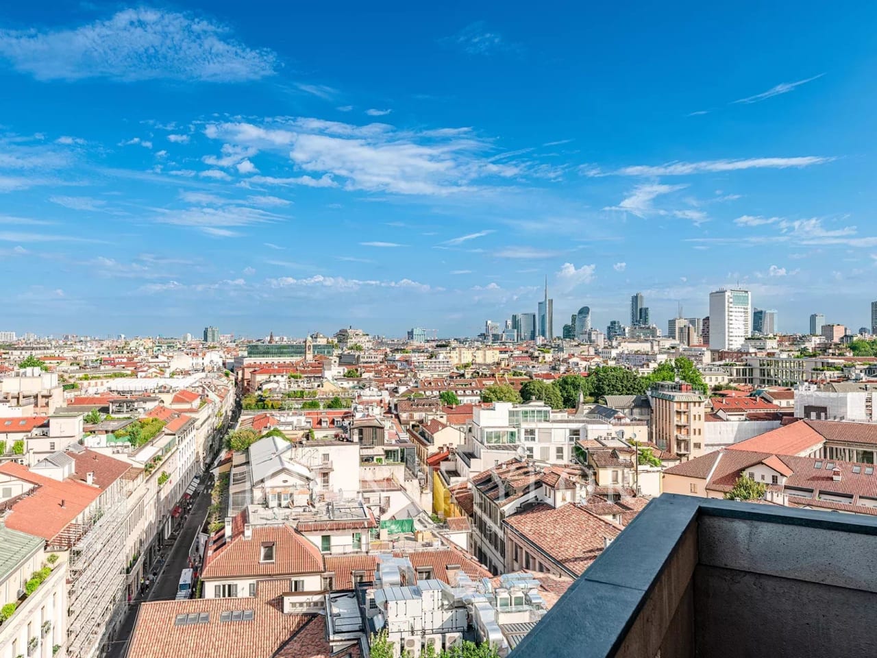Paris 8. Montaigne. In the heart of the Golden Triangle, in a superb old building, amazing penthouse apartment on the top floors. With a surface area of 186.10 m2 loi Carrez (196.71 m2 on the ground), on the top floors, it is composed as follows: 5th floor : - entrance with guest cloackroom - magnificent double-height living room (5.70 m high ceilings) with access to an nice balcony (13.40 m2) - fitted and equipped kitchen opening onto the living room - spacious master bedroom on courtyard with access to another large balcony-terrace (14.80 m2), marble bathroom, dressing room - 2 further courtyard bedrooms with en-suite shower rooms 6th floor : - study - bedroom - shower room Apartment renovated by a renowned architect, bright, quiet and fully air-conditioned. Cellar in basement and 20 m2 studio included. Just a minute from Avenue Montaigne and Rue François 1er, close to all the luxury boutiques and Palace Hotels of the Golden Triangle.