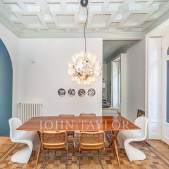 Located in a fully renovated 19th-century building in the heart of Chiado, this spacious apartment with 350m² is set in one of Lisbon’s most sought-after neighbourhoods. The layout is generous and well designed, with high ceilings, elegant proportions, and quality finishes throughout. It includes four bedrooms, three of them en suite, as well as a large living and dining area of approximately 80 m², filled with natural light and partial views of the Tagus River. Interiors combine classic features with modern comfort, including hardwood floors, custom fittings, and underfloor heating in all bathrooms and the guest WC. Every detail reflects quality and care, from the elegant flooring to the custom fittings, creating a home that balances classic charm with contemporary refinement. The kitchen is fully equipped and includes a bright dining space with ample storage. The property has private garage for two cars, with natural light and direct access from the street. Chiado is known for its cultural heritage, historic architecture, and central location. The apartment is just a short walk from theatres, galleries, restaurants, shops, and excellent public transport. A distinctive home offering space, comfort, and timeless character in one of Lisbon’s most prestigious neighbourhoods.