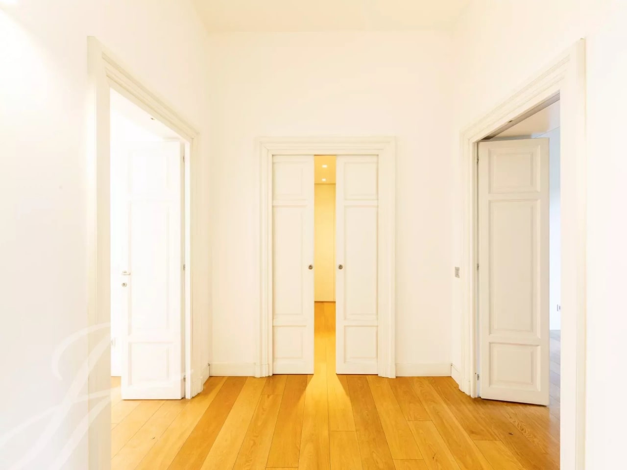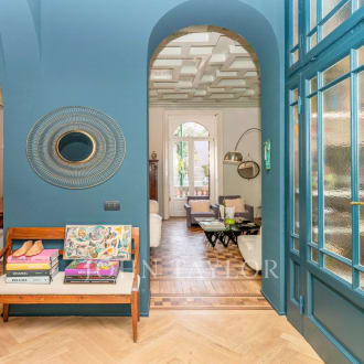 Located on the third floor of a classic 1900's building, in the sought-after neighborhood of Justicia, this 251m2 family apartment consists of 4 bedrooms with en-suite bathrooms, plus an office area, a separate library and a full laundry area. The living room and kitchen are located on the light-flooded exterior, with its 4 balconies facing the street and its high ceilings with moldings. This property is being luxuriously refurbished and will be delivered furnished in June 2025.