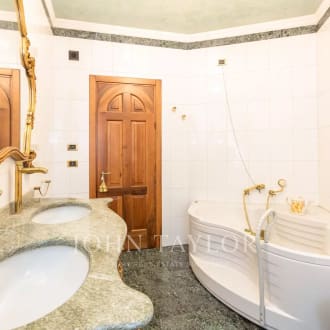 Le Vésinet. Calm and serenity are the utmost luxury for this sublime Palais located just 20 minutes away from Paris porte Maillot. Nested in the luxurious Parc des Ibis of Le Vesinet, this inspired Grand Trianon palace provides 1769 sq. meters of family and entertaining space over lower ground, garden level and ground floor. The property includes the main villa, a caretaker villa, staff accomodations, a Guest house and garages, set in a 7000 sq. meters immaculate and lush landscaped grounds. RECEPTION AREA - GROUND FLOOR • Reception hall • Reception room • Living room • Winter garden • La Cornue kitchen • Dining room • Galerie PRIVATE AREA - GARDEN LEVEL • Private living room • 3 bedrooms suite • Owner’s suite • «His and Her» dressing rooms • «His and Her» bathrooms BASEMENT • Cinema • Game room • Massage and yoga room • Swimming pool • Sauna/hammam • Changing rooms and showers • Fully equipped gym • Squash court • Closed garage for 3 cars • Technical rooms HERMITAGE HOUSE • Independent Guest house with: - Living room, office, kitchen, laundry room - 4 Bedrooms with bathrooms LANDSCAPED GARDENS AND GROUND • Japanese garden • Roseraie • Soccer field • Fountain • Greenhouse OUTBUILDINGS • Independent caretaker villa with 1 bedroom, bathroom, living room and kitchen • Independent staff villa with 2 bedrooms, bathrooms, living room and kitchen SECURITY FEATURES • Security throughout the property with highly sophisticated surveillance and monitoring equipment.