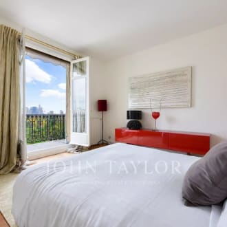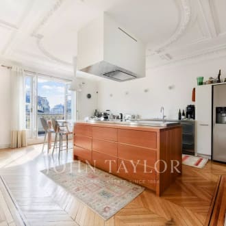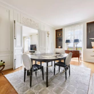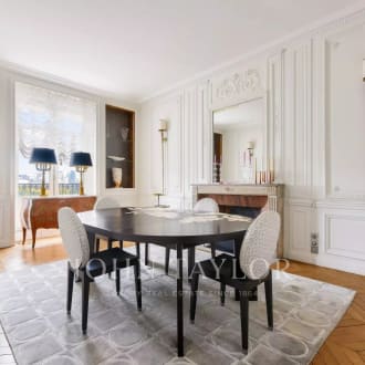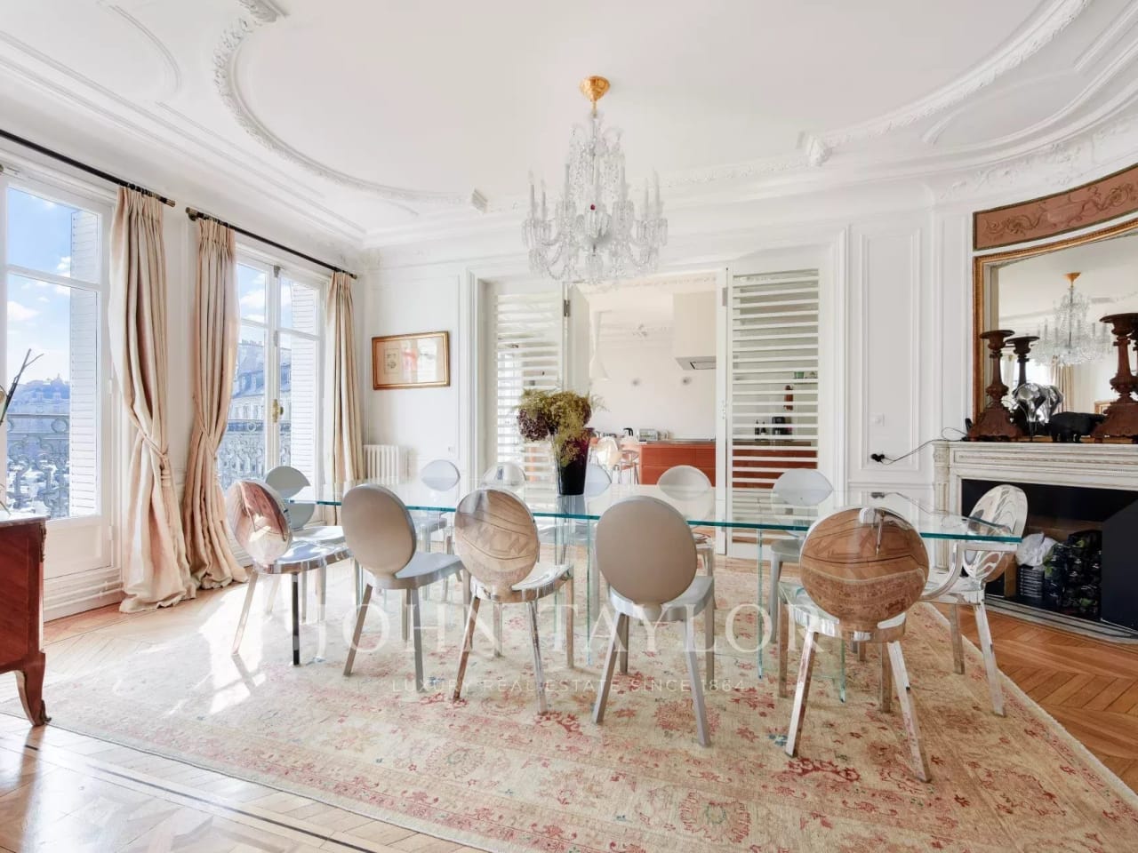 Paris 16. Trocadéro - Passy. Trophy asset ! In a quiet and high luxury building, apartment providing unique views over the Eiffel Tower, the Seine and the Jardins du Trocadéro, unoverlooked. Entirely renovated by an architect, this 290 sqm apartment features: - vestibule - entrance gallery - triple reception room enjoying a panoramic view over the Eiffel Tower, sunny and balcony running along its length - beautiful dining room with central island, bench seat and wine cellar - superb parental suite of 40 sqm enjoying the same wonderful views, double dressing room and balconies - two en suite bedrooms Volumes, air-conditioning, superbly appointed and and wonderful views. Three maids rooms, two cellars and three parking spaces are included.