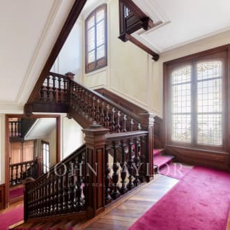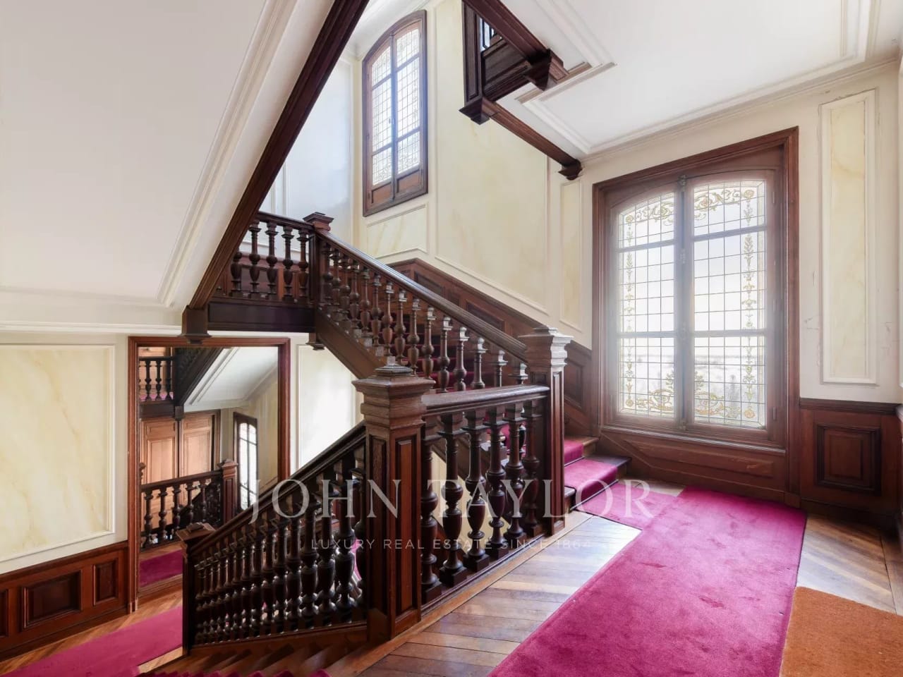 Paris 16, between the Saint James district and rue de Longchamp, John Taylor presents a late 19th-century private mansion in freestone with zinc roof, built over a basement, first floor, first floor and attic. The property benefits from a beautiful east-facing garden planted with trees. The main building is arranged as follows: First floor: - Entrance hall - A magnificent double living room overlooking the garden - A dining room - A fitted and equipped kitchen Second floor: - Two suites with dressing rooms, bathrooms and showers Second floor: - Two suites with dressing rooms and shower rooms Basement with TV lounge or gym, utility room, technical room. Two outbuildings in need of complete restoration but offering great potential, a courtyard with three garages complete this property.
