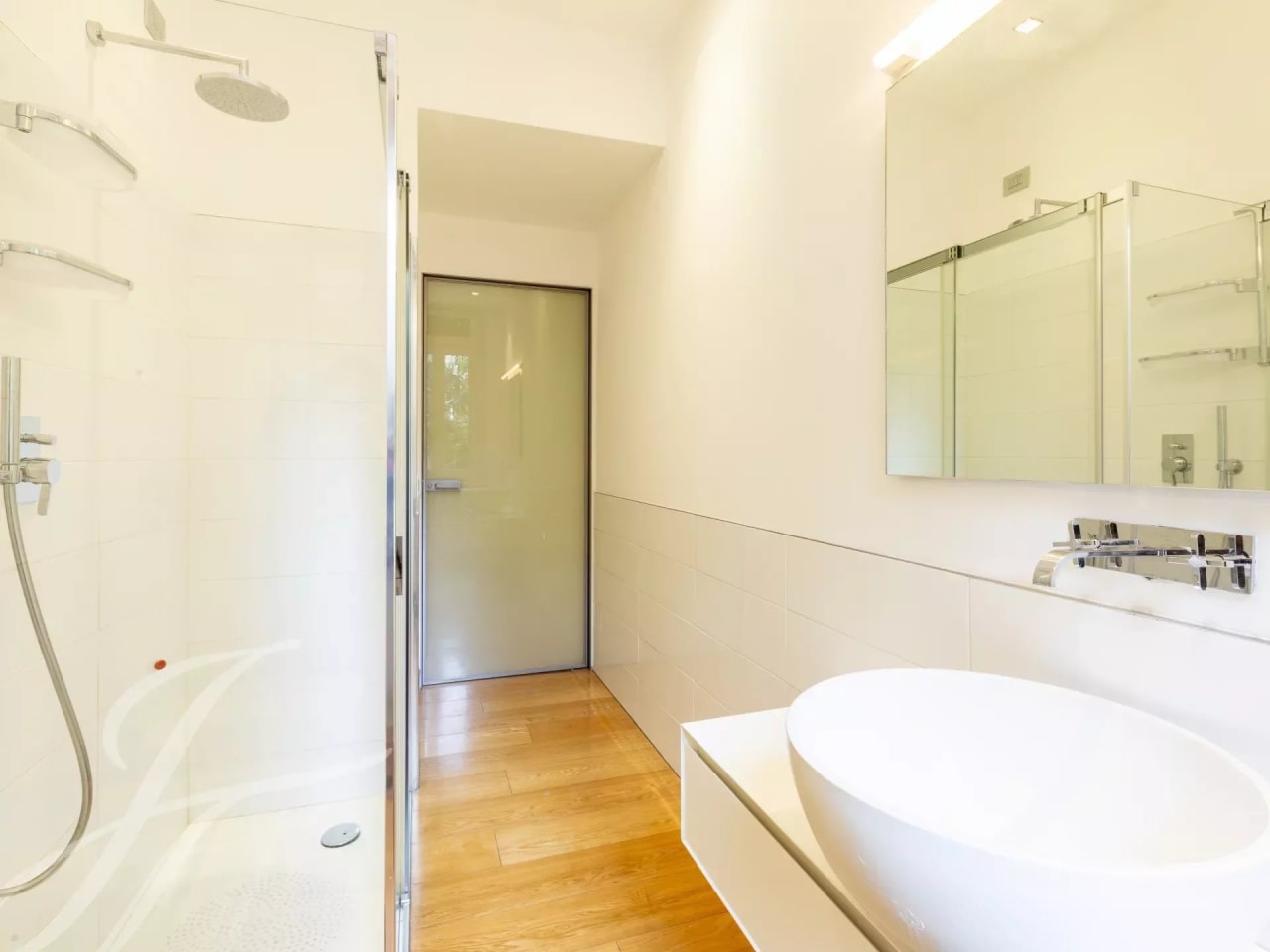 Nestled in the picturesque hills of the backcountry of Cannes, this recently renovated Provençal villa epitomises comfort, luxury, modernity and unrivalled quality, coupled with breathtaking panoramic views as far as the bay of Mandelieu. Access to the villa is through an impressive cathedral entrance, which immediately draws the eye to the spacious, light-flooded living area. The sliding doors of this entire level open onto the magnificent terrace and immediately convey a typical Mediterranean lifestyle. A double living room offers versatile functionality and promises convivial or contemplative hours in front of the open fireplace. The spacious dining room, with room for 12 guests, is directly adjacent to the open, modern Italian kitchen from the renowned Boffi brand, which makes cooking for family or guests a real pleasure. Directly adjacent is a romantic, large summer lounge with impressive ceiling beams, and here too, large sliding doors give the impression of being outside. This room offers a variety of uses that you no longer want to do without. A cosy home cinema with state-of-the-art technology completes the comfort of this level. The first floor, accessible via a lift, houses 4 suites with modern bathrooms, including the master suite with a spacious dressing room. Three of these rooms offer direct access to a large balcony with breathtaking panoramic views. The garden level of the villa inspires a variety of activities: a fitness room with shower, an air-conditioned wine cellar with separate tasting room for wine connoisseurs, a lounge, a guest room with shower and the practical laundry room of the house. From the double garage, you can easily reach all three floors by lift. The idyllic summer area offers the luxury of a pretty infinity pool with a modern pool house and functional kitchen and promises absolute joie de vivre and relaxing moments! The 5000 sq.m park with its own spring was designed by the renowned garden architect Jean Mus and gives this quietly situated property an incomparable touch and this exceptional Mediterranean charm. 35 minutes from Nice and Cannes, surrounded by prestigious golf courses and first-class restaurants, this property fulfils all the criteria for a dream residence !