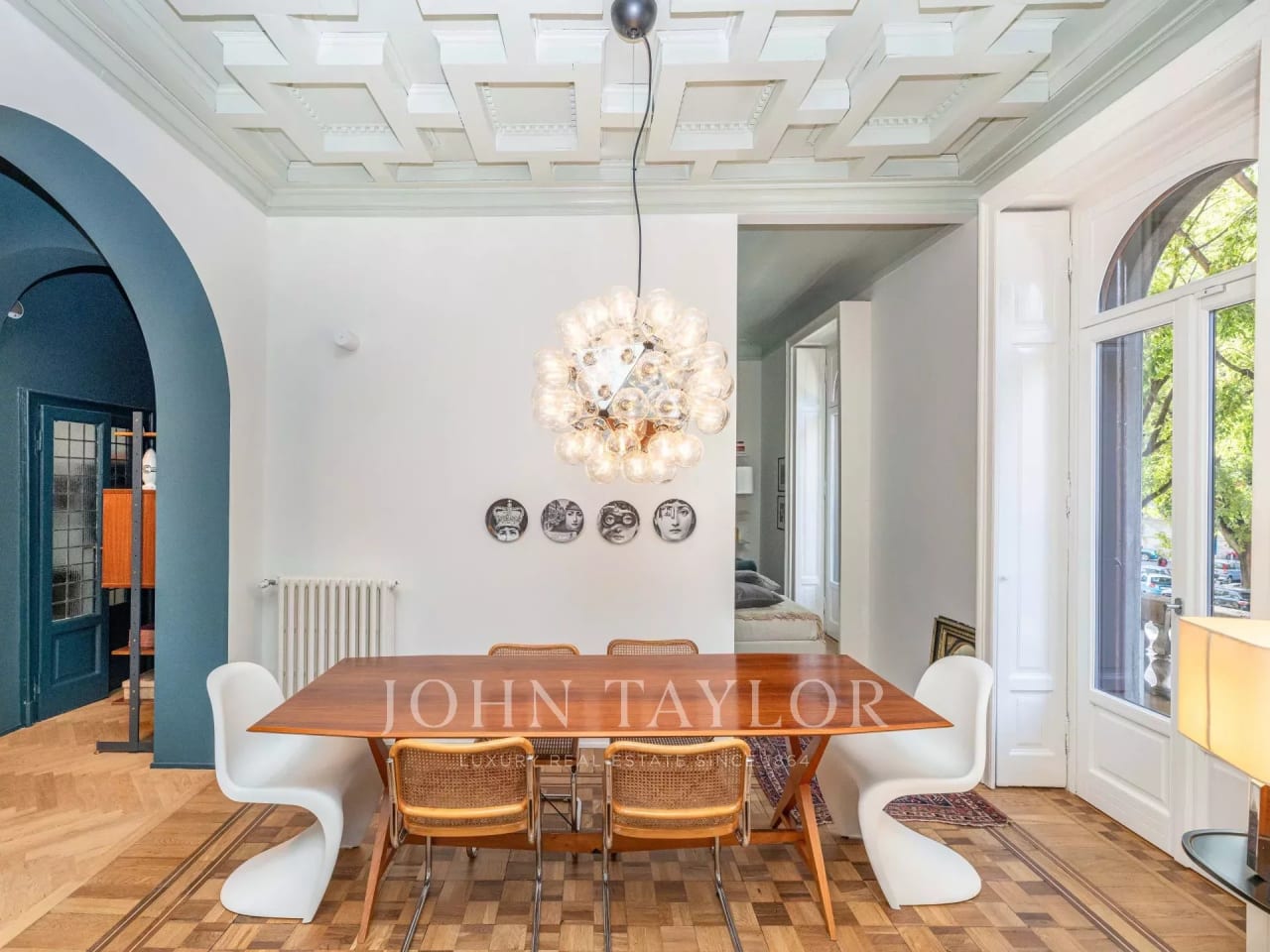 Exceptional 344sqm property in Los Jerónimos, with 5 south-facing balconies overlooking the street. Incredible social area comprising a living room and a dining room for 8 diners, with 4 windows to the street that flood the entire home with light. It also features a magnificent independent kitchen, with a service area and laundry room. The night area includes, in addition to a TV-room or family room, three suites; the main one, exterior and with a walk-in closet. Two additional suites complete this dream home in the coveted neighborhood of Los Jerónimos. The building has a concierge and an attic storage room, adding the finishing touch to this dream in the capital. Los Jerónimos is a neighborhood in the Madrid district of Retiro. It is home to the Retiro Park and the Church of Los Jerónimos, from which it gets its name. It was created starting in 1865 on land that belonged to the now-demolished Buen Retiro Palace, which was sold to the State by Queen Isabel II (1830-1904) to be urbanized. It is part of the so-called Landscape of Light, along with Paseo del Prado, which was declared a World Heritage Site on July 25, 2021. It is one of the most elegant and aristocratic neighborhoods in Madrid, and its properties command the highest prices per square meter in the capital. Among its most emblematic buildings are the Prado Museum, the Church of San Jerónimo el Real, the Royal Spanish Academy, the Madrid City Hall, the Ritz Hotel, the Madrid Stock Exchange Palace, the General Headquarters of the Navy, and the National Museum of Decorative Arts. In the Los Jerónimos neighborhood, besides the Retiro Park, is the Royal Botanical Garden, which has been located since the 18th century in front of the south façade of the Prado Museum.