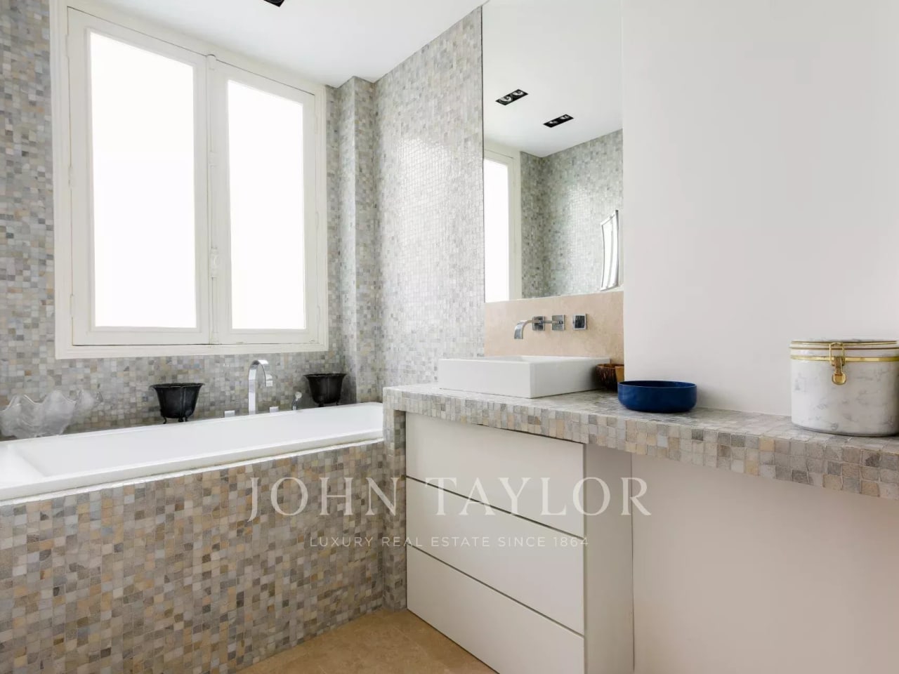 Just a stone's throw from Place du Trocadéro, on the top floor of a prestigious freestone building, we offer you a superb renovated and furnished 210 m² apartment. Bathed in light and surrounded by balconies, it offers lovely unobstructed views of Paris and its monuments (Eiffel Tower, Invalides, Palais de Tokyo, Sacré Coeur etc.). On the first floor alone, it includes : - An entrance hall - A large reception room - A second adjoining lounge-library - A dining room - A fitted kitchen opening onto the dining room - A master suite with dressing room and full bathroom - Two junior suites with en-suite shower rooms - A fourth junior suite upstairs with its own shower room and toilet - Laundry room - ample storage space - Guest toilet Two cellars and a storage room. Nearby parking available. The apartment was completely renovated to a high standard in 2024 (Carrara marble, travertine, home automation, air conditioning, new plumbing and electricity). The common areas have just been renovated. ECD: C