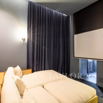 John Taylor is proud to exclusively present a truly unique property: a spectacular penthouse with panoramic views and four terraces located in the prestigious Salamanca neighbourhood. The refurbishment, by renowned architect Miguel Molins, makes masterful use of the spaces, maximising the extraordinary natural light provided by its three orientations and achieving a modern, elegant and cheerful atmosphere. The property occupies the entire eighth floor of the building and has a perfectly ordered layout around the large central courtyard in two distinct areas: a social area and a private area. As soon as we enter, we find the large living-dining room, flooded with light and facing West. The terrace, nearly 20 m², is integrated into the living room through floor-to-ceiling sliding glass doors that allow you to enjoy the beautiful panoramic views. A charming guest toilet completes the social area. The kitchen, with its modern design and top-of-the-range appliances, connects the social area with the private area. It stands out for its excellent natural light thanks to its large south-facing windows. The private area consists of four bedrooms, all with en-suite bathrooms, and all with their own access to terraces. There is also a separate area for laundry service. This luxurious penthouse is equipped with underfloor heating and cooling (aerothermal) and air conditioning in all rooms. Both systems are controlled from a single panel in each room (Airzone). The qualities are first class with natural oak floors laid in herringbone pattern, motorised thermal slat blinds with sectorised domotics, floor to ceiling doors made to measure, high efficiency LED lighting, data and antenna sockets in every room with fibre optic network, Cortizo aluminium windows and fittings, etc.