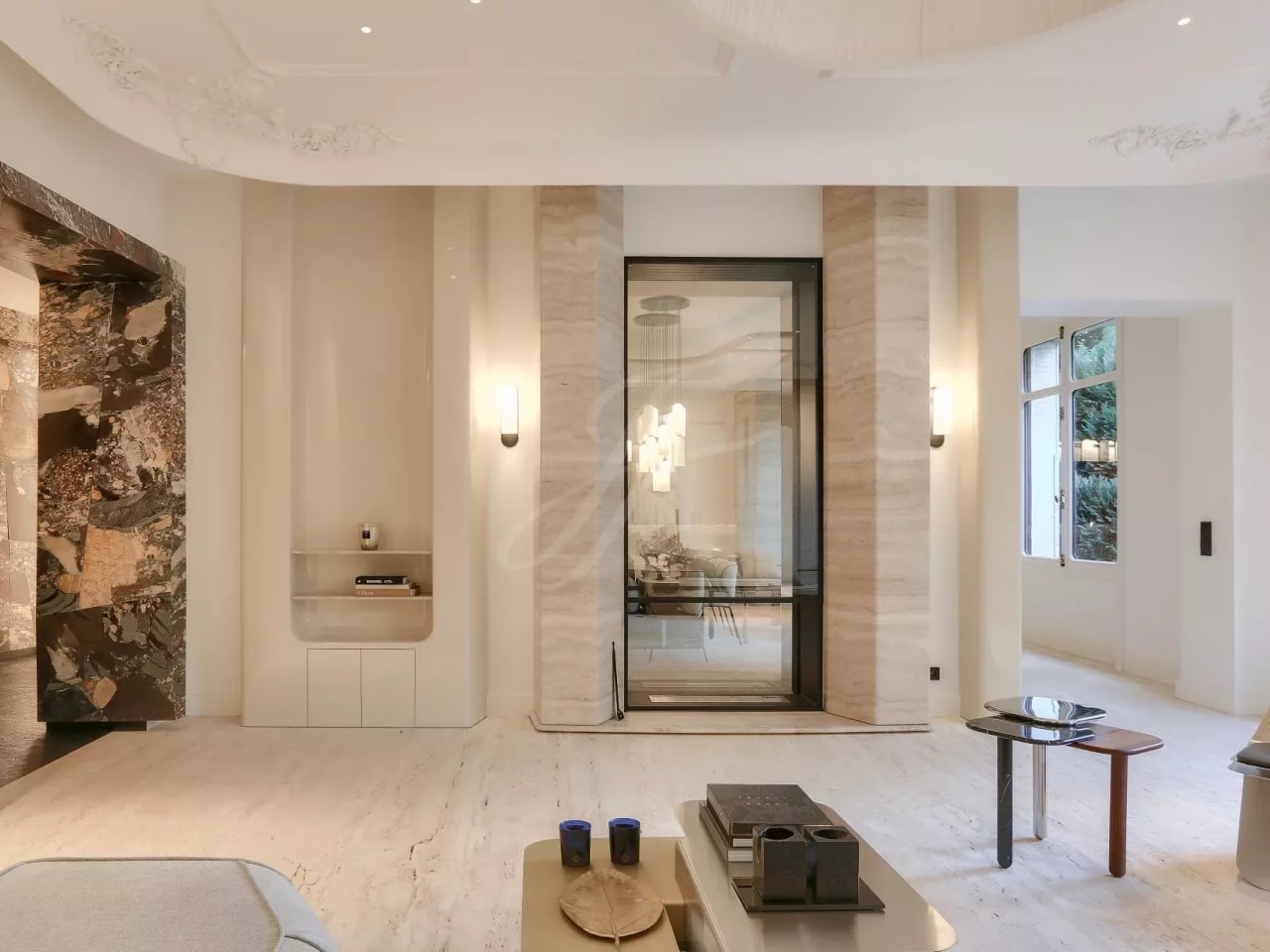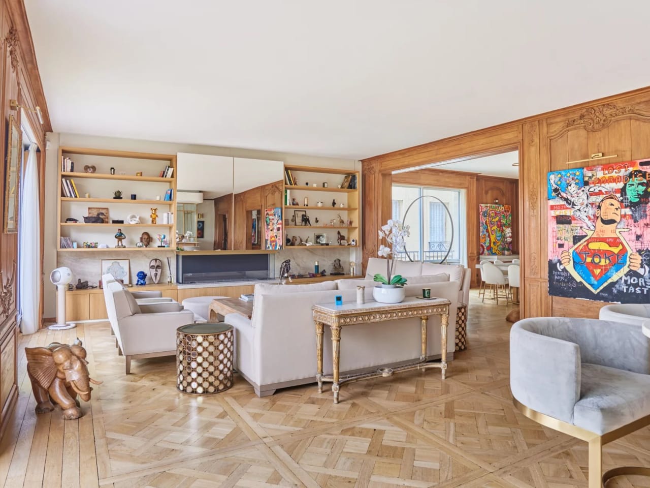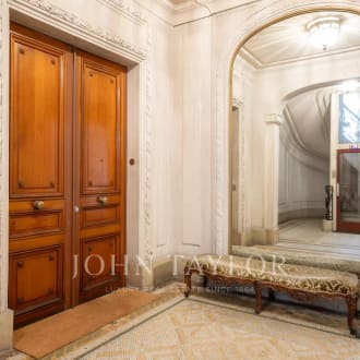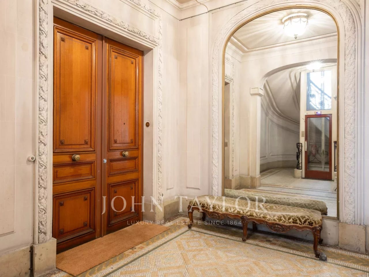 Paris 16 - Victor Hugo Avenue Victor Hugo/Henri Martin, on the 3rd floor of a luxury building, superb 347 sq.m. apartment, luxuriously renovated, offering vast and beautiful spaces with 3.50 m high ceilings, including : - A beautiful entrance gallery, - A large corner lounge with balcony, - A dining room, - A fully-equipped galley kitchen, - A study - A master suite with dressing room and marble bathroom, - Three bedrooms, each with its own shower room and toilet, - A sports room (5th bedroom), - A laundry room, - Guest toilet. - Plenty of built-in storage. Very sunny (South/East exposure), air-conditioned apartment. Plan perfectly dividing reception and private areas. Janitor in the building. Renovated high-quality common areas. A cellar completes this property. Parking solutions in the immediate vicinity.