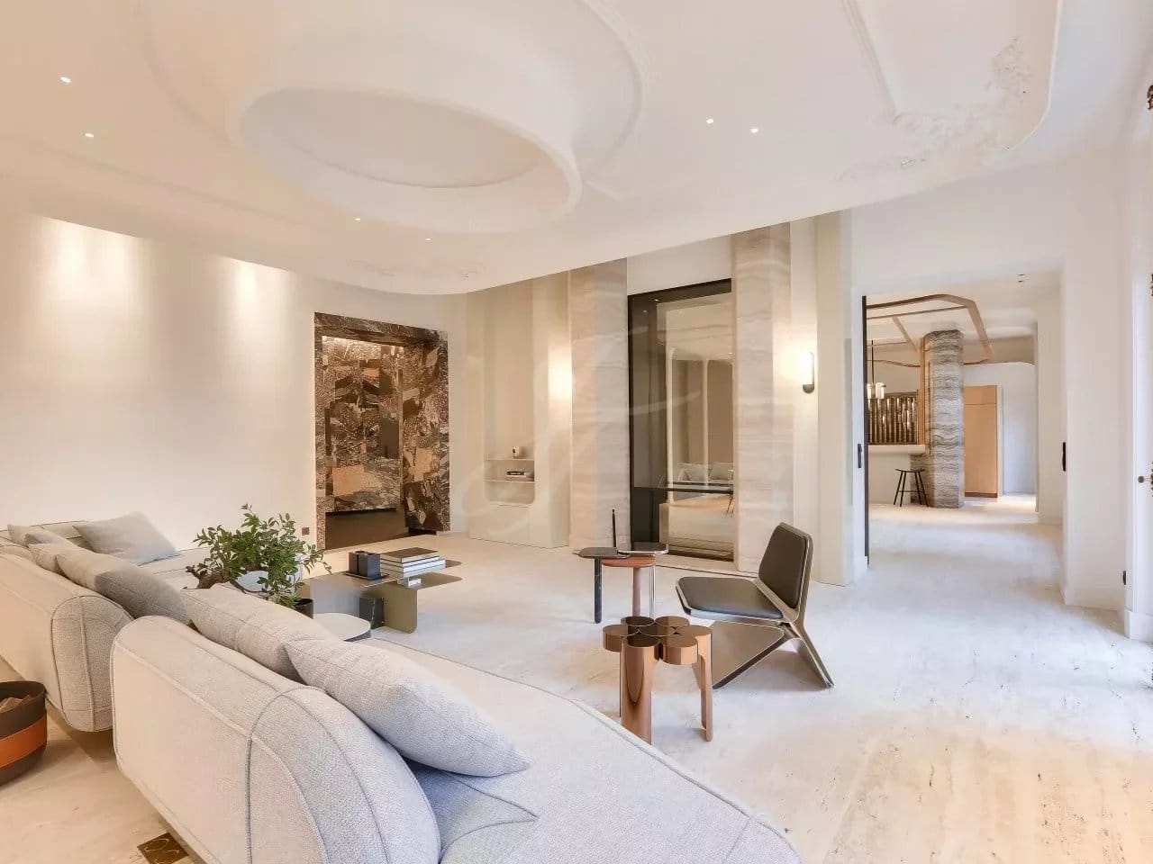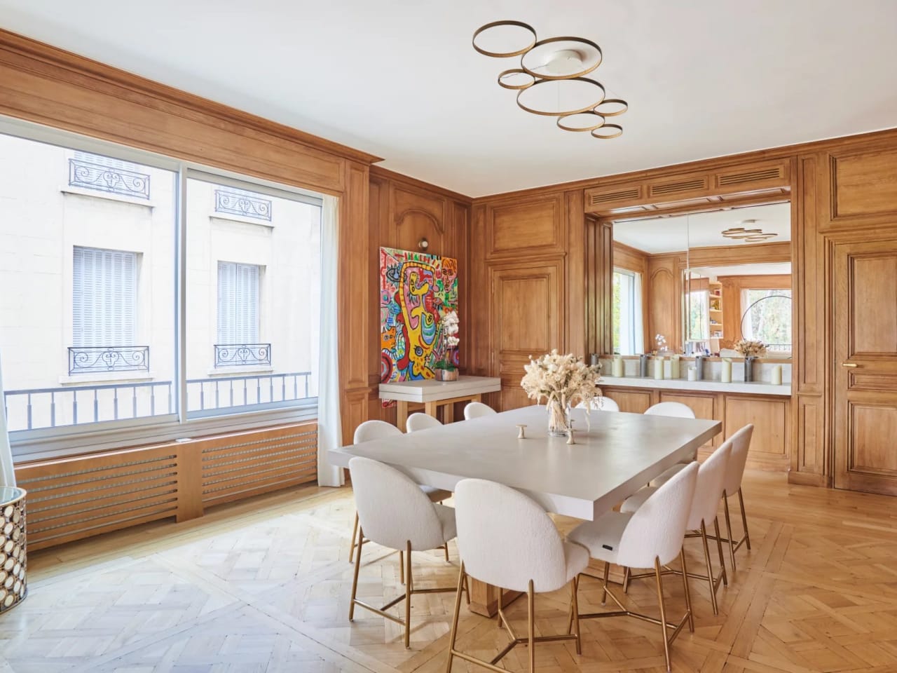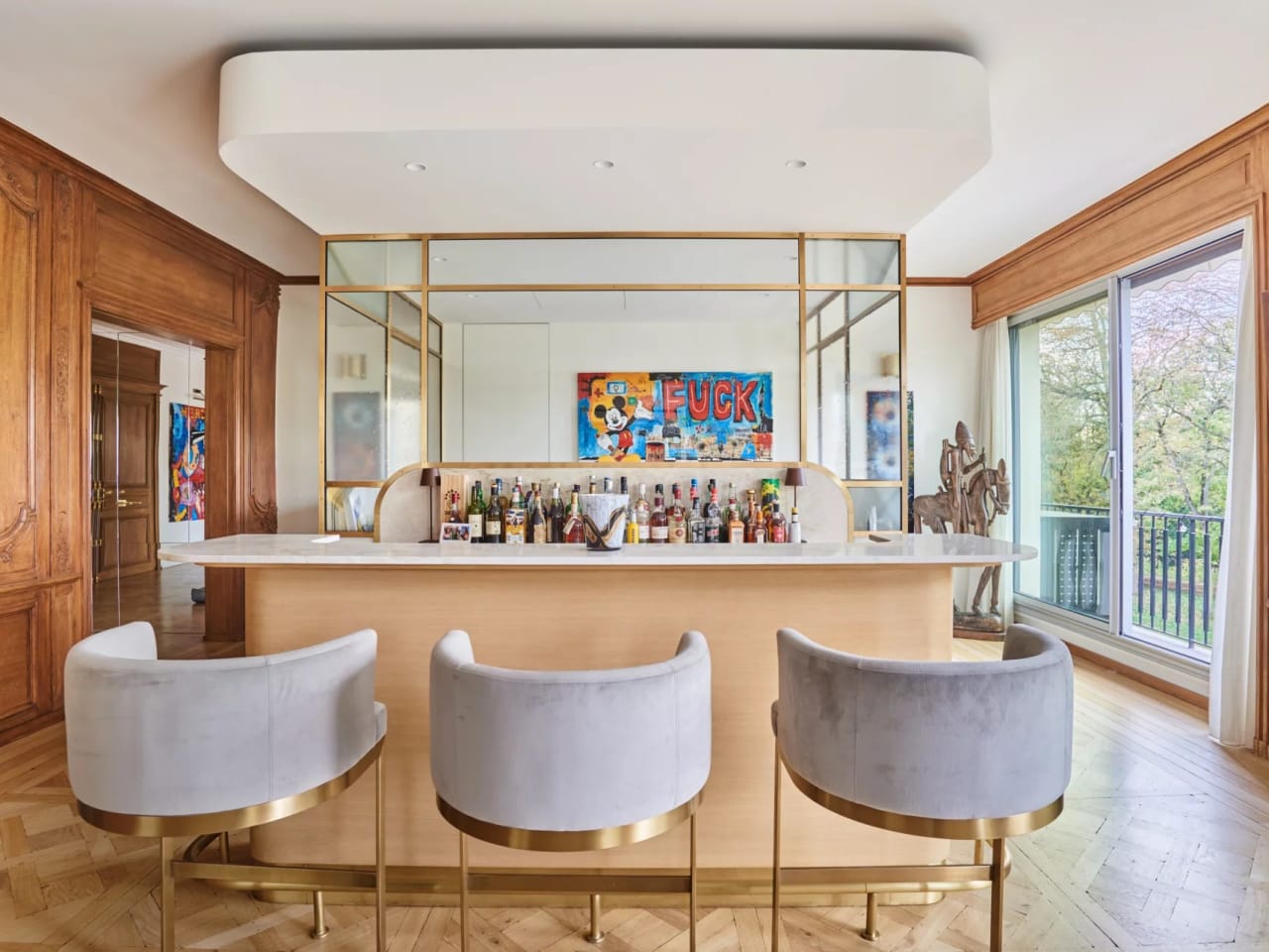 Paris 16 - Victor Hugo Avenue Victor Hugo/Henri Martin, on the 3rd floor of a luxury building, superb 347 sq.m. apartment, luxuriously renovated, offering vast and beautiful spaces with 3.50 m high ceilings, including : - A beautiful entrance gallery, - A large corner lounge with balcony, - A dining room, - A fully-equipped galley kitchen, - A study - A master suite with dressing room and marble bathroom, - Three bedrooms, each with its own shower room and toilet, - A sports room (5th bedroom), - A laundry room, - Guest toilet. - Plenty of built-in storage. Very sunny (South/East exposure), air-conditioned apartment. Plan perfectly dividing reception and private areas. Janitor in the building. Renovated high-quality common areas. A cellar completes this property. Parking solutions in the immediate vicinity.