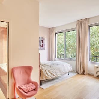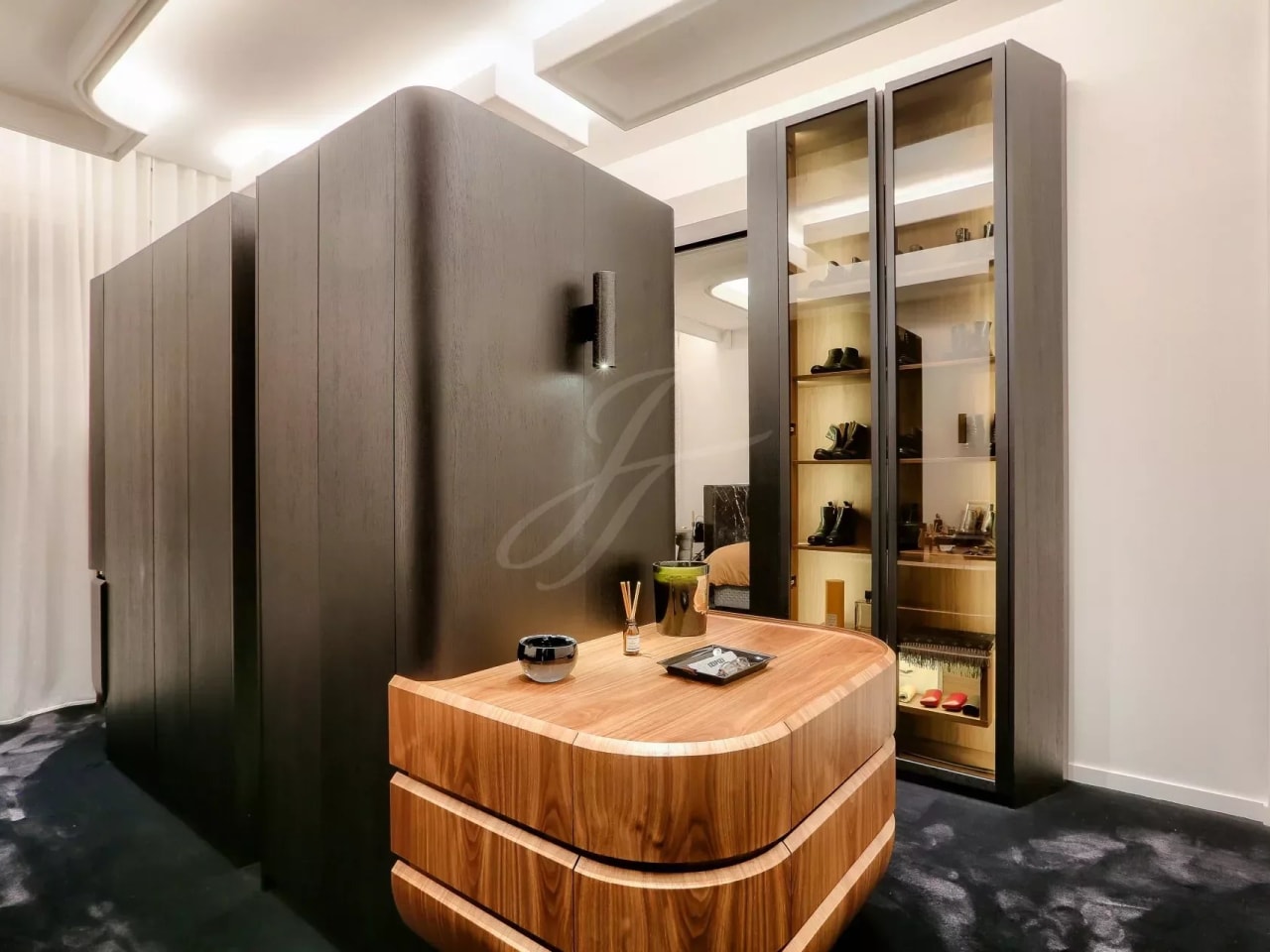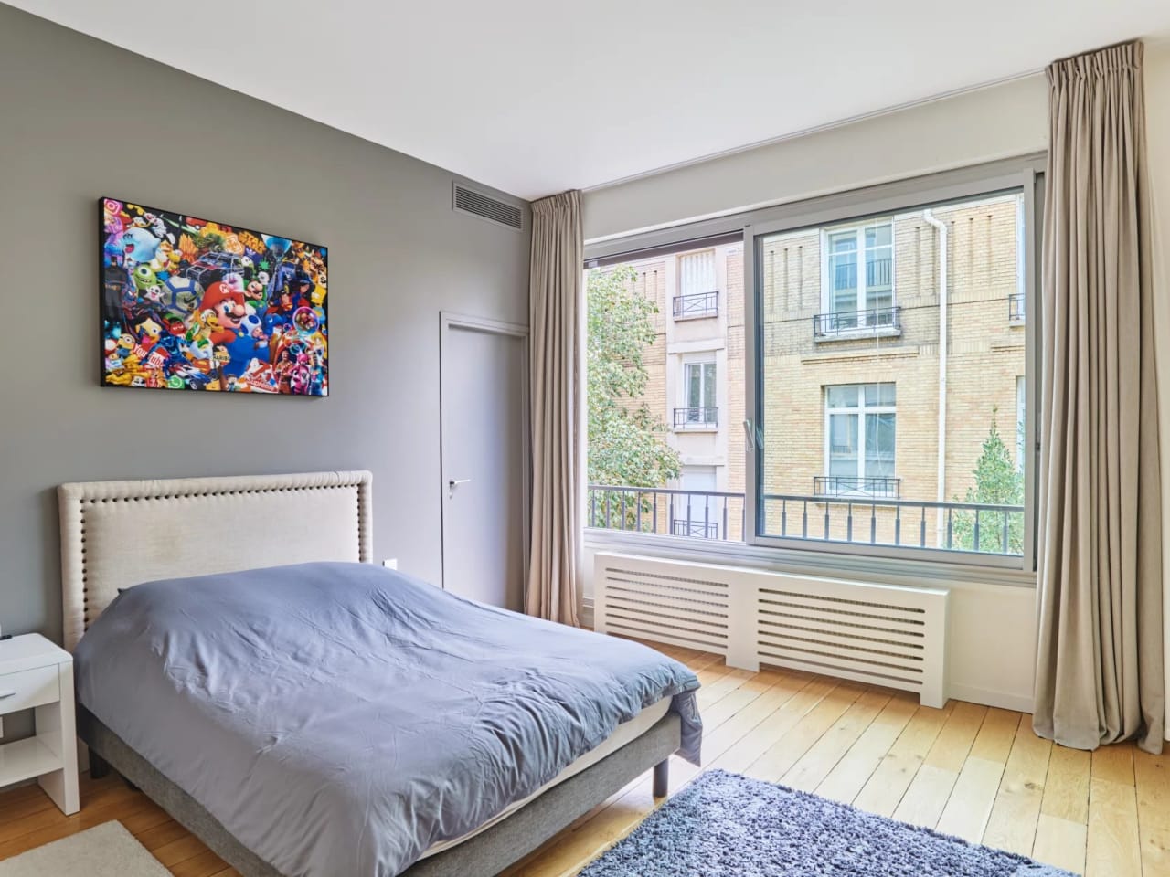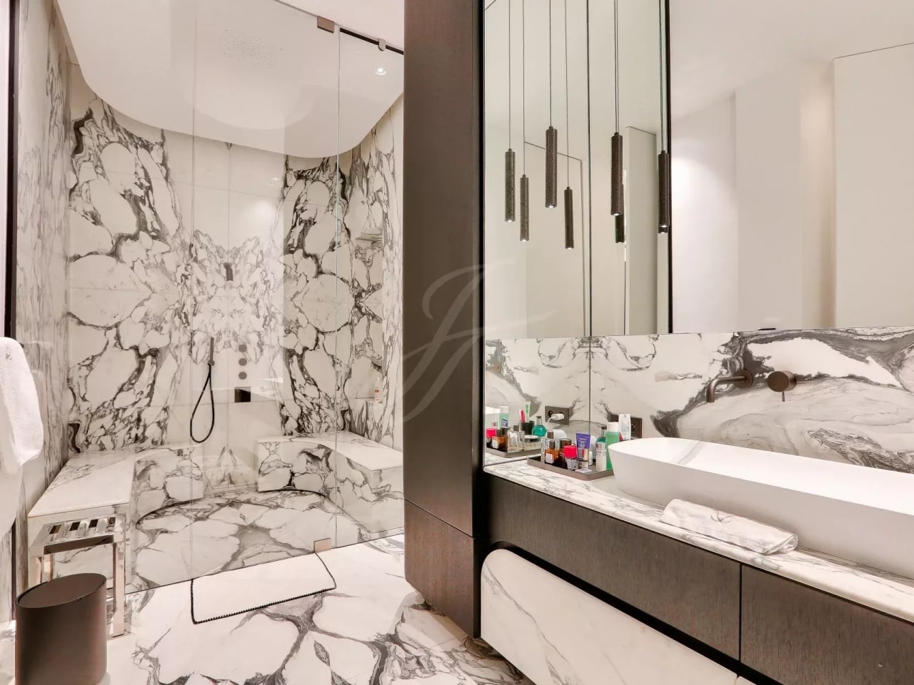 Just a stone's throw from Place du Trocadéro, on the top floor of a prestigious freestone building, we offer you a superb renovated and furnished 210 m² apartment. Bathed in light and surrounded by balconies, it offers lovely unobstructed views of Paris and its monuments (Eiffel Tower, Invalides, Palais de Tokyo, Sacré Coeur etc.). On the first floor alone, it includes : - An entrance hall - A large reception room - A second adjoining lounge-library - A dining room - A fitted kitchen opening onto the dining room - A master suite with dressing room and full bathroom - Two junior suites with en-suite shower rooms - A fourth junior suite upstairs with its own shower room and toilet - Laundry room - ample storage space - Guest toilet Two cellars and a storage room. Nearby parking available. The apartment was completely renovated to a high standard in 2024 (Carrara marble, travertine, home automation, air conditioning, new plumbing and electricity). The common areas have just been renovated. ECD: C