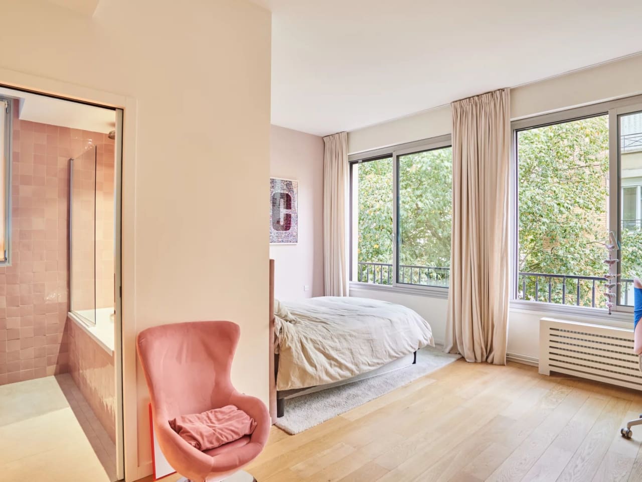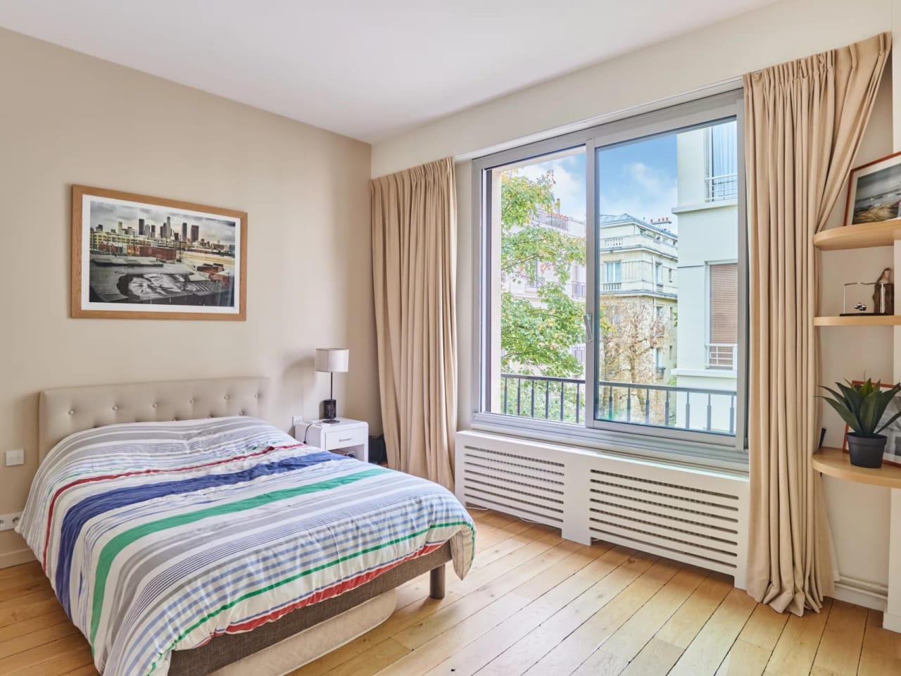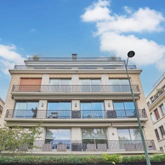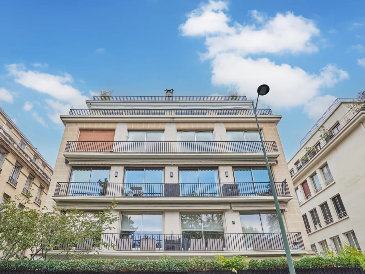 Located in the heart of a sought-after neighborhood in the 16th arrondissement, this remarkable private mansion, designed by renowned architect Pol Abraham, stands out for its distinctive character, generous volumes, and a stunning 90 sqm landscaped rooftop terrace offering open and peaceful views. With approximately 400 sqm of living space spread across four levels served by a private elevator, this light-filled property is currently divided into three independent apartments, each with its own separate entrance. The layout is perfectly suited for a large family, a multi-generational residence, or a prestigious investment. Layout: Ground floor: a charming 74 sqm one-bedroom apartment, accompanied by a spacious cellar. First floor (with independent street access): a spectacular duplex featuring impressive volumes, a cathedral-ceiling living room, open-plan kitchen with dining area, study space, a master suite with dressing room and bathroom, a second bedroom, and a shower room. A third bedroom can easily be added. Third and fourth floors: an elegant, fully renovated family duplex comprising four bedrooms with beautiful garden views and direct access to the 90 sqm landscaped rooftop terrace. The property benefits from two independent entrances, a private elevator serving all floors, and a private garage box in the adjoining building. A rare property on the market combining remarkable architecture, expansive living areas, exceptional outdoor spaces, and a highly sought-after location.