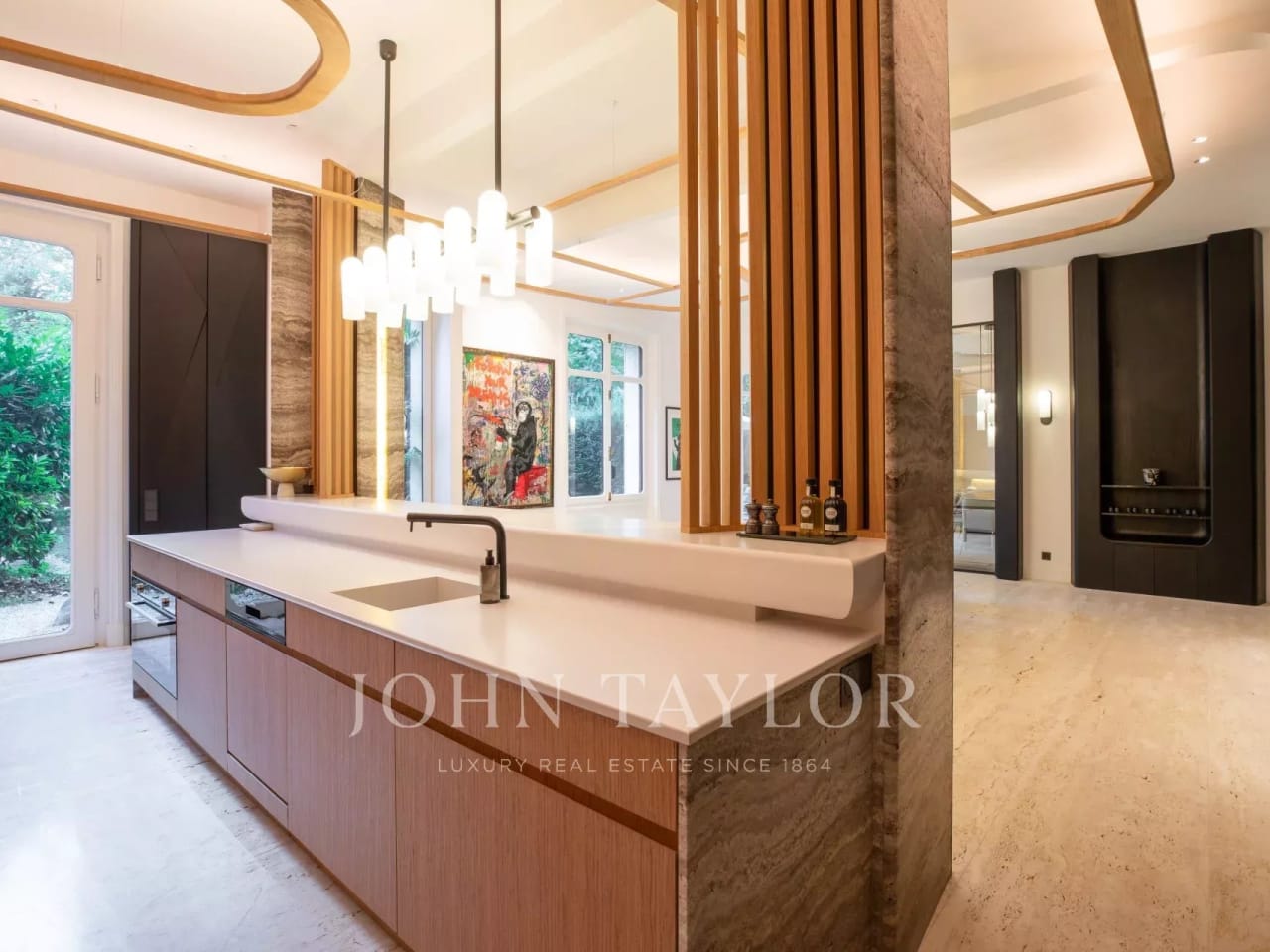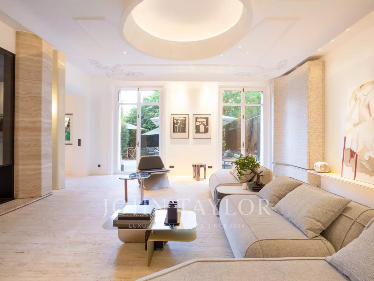 Paris 16, between the Saint James district and rue de Longchamp, John Taylor presents a late 19th-century private mansion in freestone with zinc roof, built over a basement, first floor, first floor and attic. The property benefits from a beautiful east-facing garden planted with trees. The main building is arranged as follows: First floor: - Entrance hall - A magnificent double living room overlooking the garden - A dining room - A fitted and equipped kitchen Second floor: - Two suites with dressing rooms, bathrooms and showers Second floor: - Two suites with dressing rooms and shower rooms Basement with TV lounge or gym, utility room, technical room. Two outbuildings in need of complete restoration but offering great potential, a courtyard with three garages complete this property.