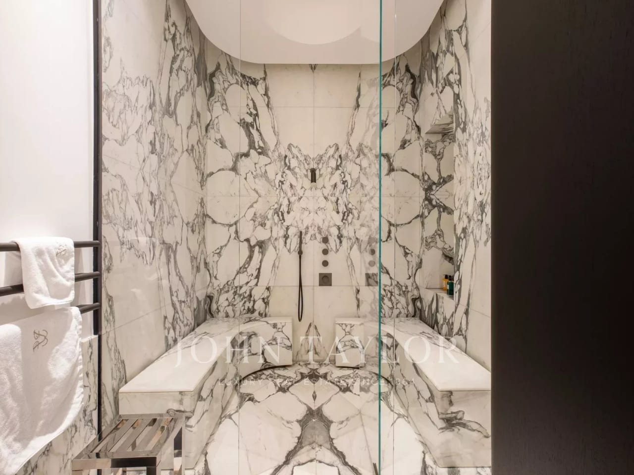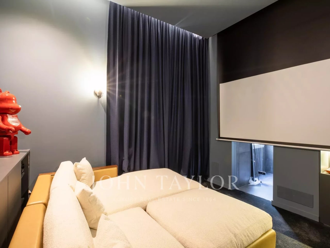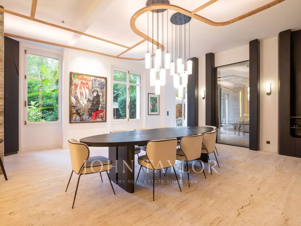 Paris 7. Varenne - Matignon. Exceptional architect-designed house adjoining the gardens of the Hôtel Matignon, in absolute calm. Designed as a very large loft, with a total surface area of approx. 850 m2 (575 m2 living space), it extends over 3 main levels, around a 101 m2 garden, with a swimming pool. Garden level : - entrance hall - huge reception areas opening onto the garden - dining room under glass roof - fitted and equipped kitchen - large win cellar - bedroom with shower room First floor : - superb master with cathedral ceiling - bathroom / shower / dressing room - 3 further bedrooms with en-suite shower rooms - study - duplex office Basement - beautiful gym - sauna and shower room - storage space - boiler room - vault - 3-car garage Air-conditioned, very quiet, sunny property, hidden from view. Large bay windows let the sun shine into every room. Exceptional, secure setting. A very rare property in a highly sought-after area.