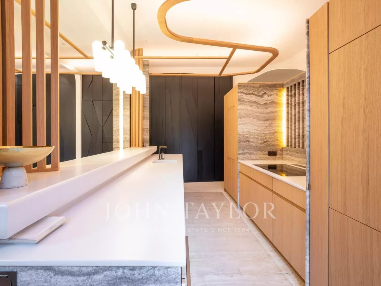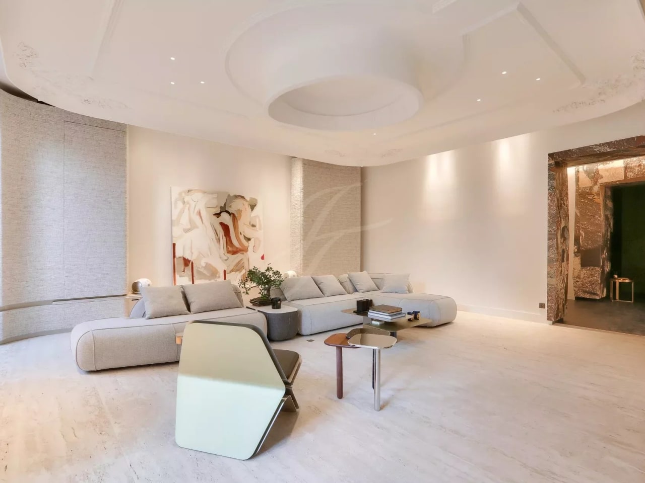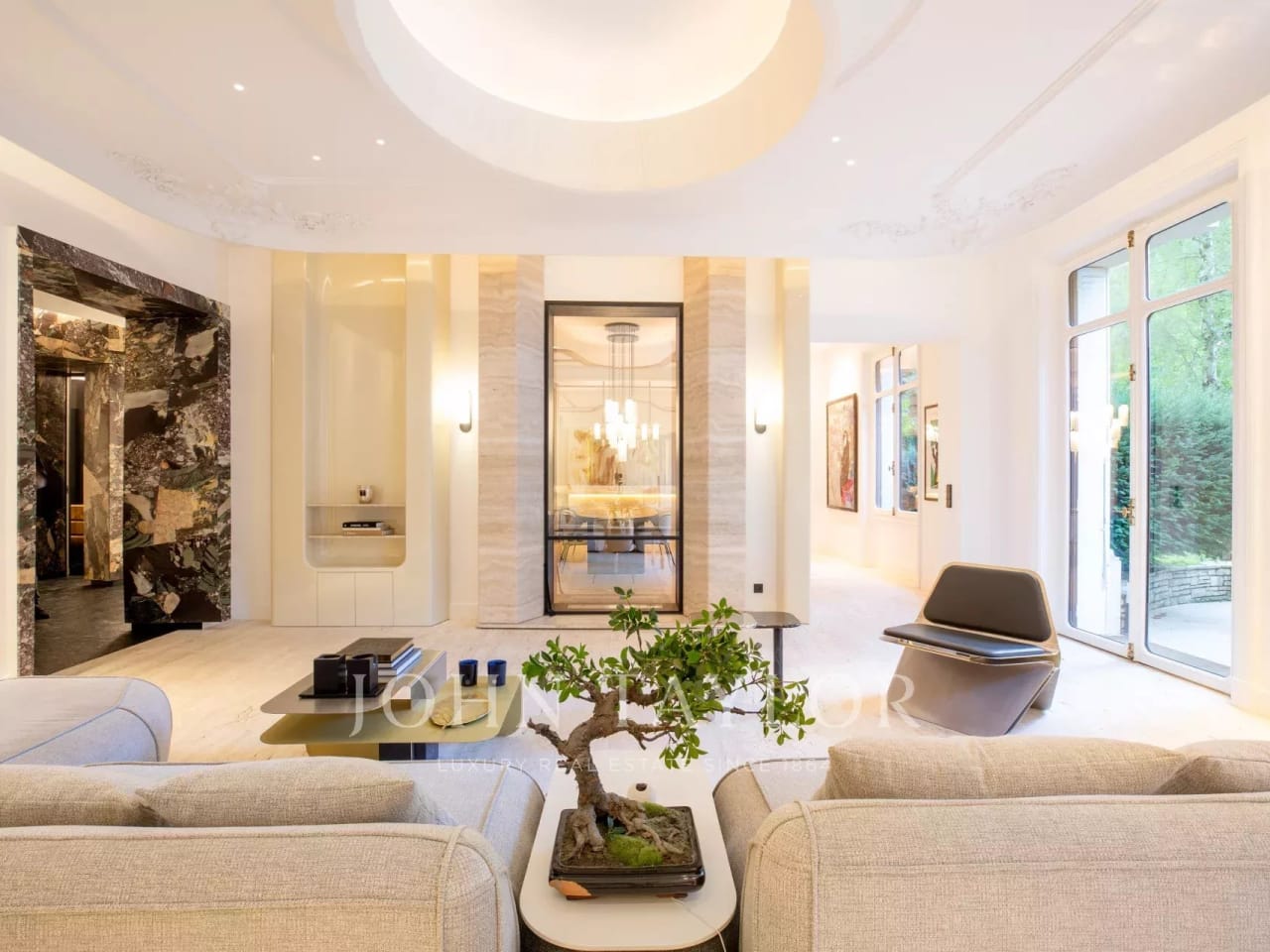 Paris 7. Varenne - Matignon. Exceptional architect-designed house adjoining the gardens of the Hôtel Matignon, in absolute calm. Designed as a very large loft, with a total surface area of approx. 850 m2 (575 m2 living space), it extends over 3 main levels, around a 101 m2 garden, with a swimming pool. Garden level : - entrance hall - huge reception areas opening onto the garden - dining room under glass roof - fitted and equipped kitchen - large win cellar - bedroom with shower room First floor : - superb master with cathedral ceiling - bathroom / shower / dressing room - 3 further bedrooms with en-suite shower rooms - study - duplex office Basement - beautiful gym - sauna and shower room - storage space - boiler room - vault - 3-car garage Air-conditioned, very quiet, sunny property, hidden from view. Large bay windows let the sun shine into every room. Exceptional, secure setting. A very rare property in a highly sought-after area.