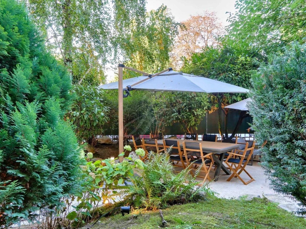 Unique. Just steps away from Le Bon Marché, hidden from view at the end of a charming paved and flower-filled courtyard, we present a stunning property dating back to the early 18th century. It comprises a main house with a floor area of 267.39 m² (234.30 m² under the Carrez law) surrounded by two lush gardens with terraces totaling 601 m² (300 m² on each side, exclusively for private use, non-buildable), as well as a 33.22 m² guest house (32.72 m² under the Carrez law). ###The Main House Built over three levels, the main house is laid out as follows: **Ground floor:** - An entrance hall - A dining room - A 33 m² living room opening onto both gardens and terraces - A 20 m² sitting room opening onto the second garden and a terrace - A bathroom with toilet - A guest powder room - A kitchen - A laundry room **First floor:** - A spacious, cross-lit "cathedral" master suite with a bathroom, dressing room, and access to a mezzanine - Two additional bedrooms, each with its own bathroom/shower room and toilet, plus an ironing/storage room **Second floor:** - A cross-lit study with stunning views of both gardens (can be converted into a bedroom) - A bathroom with toilet - A dressing room and attic storage under the eaves, as well as a mezzanine ### The Guest House Recently renovated, the guest house, discreetly located at the back of the second garden, features: - An entrance hall - A bedroom - A bathroom with toilet - A study ### Additional Features - Three beautiful historic cellars and a parking space complete this property. Its prime location, expansive outdoor spaces, tranquility, and unique charm make this property one-of-a-kind in Paris.